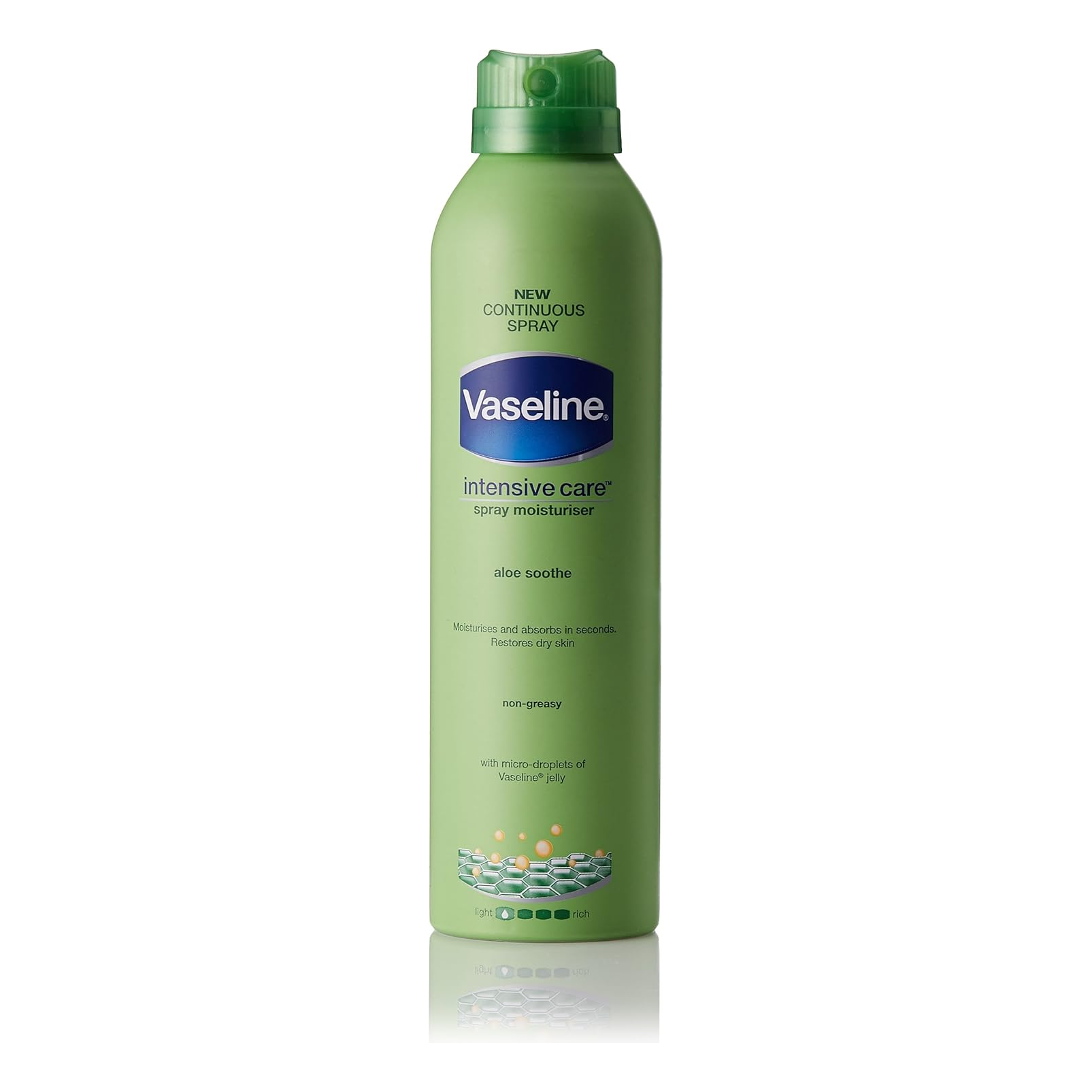 Vaseline Intensive Care Spray Moisturiser is a fast-absorbing, non-greasy body lotion in an easy-to-use spray format. Enriched with micro-droplets of Vaseline jelly and nourishing moisturisers, it instantly soothes and hydrates dry skin, leaving it soft, smooth, and healthy-looking.