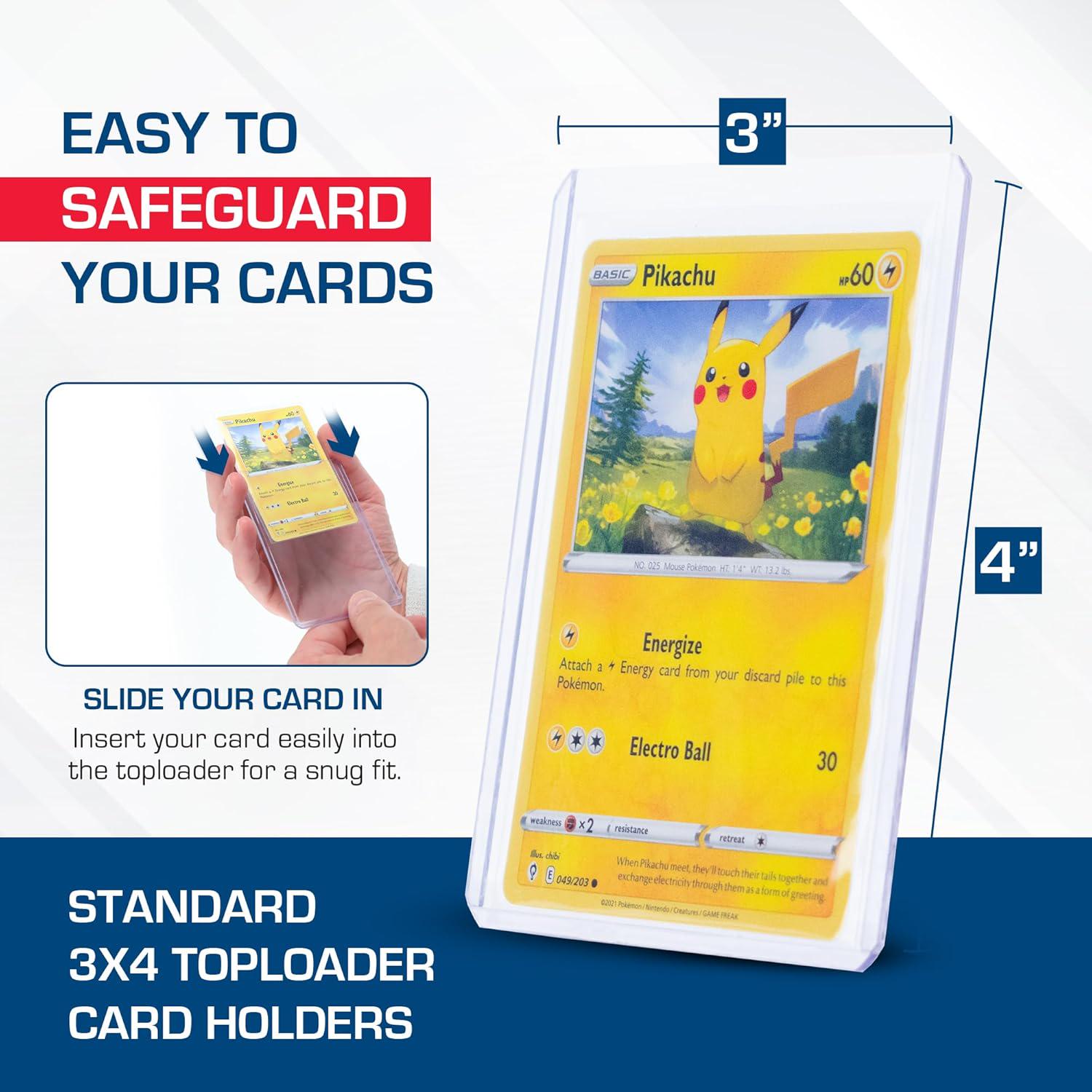 - Unmatched Protection: These trading card sleeves are renowned for setting the standard in card protection. Safeguard your collection from wear, scratches, and other potential damages. These card toploaders provide top-of-the-line card protection.