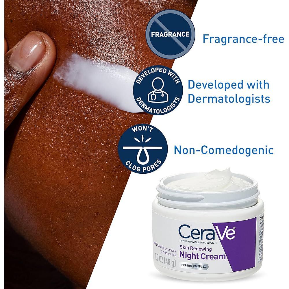 CeraVe Skin Renewing Night Cream, Niacinamide, Peptide Complex, And Hyaluronic Acid Moisturizer For Face, 1.7 Ounce, Packaging May Vary