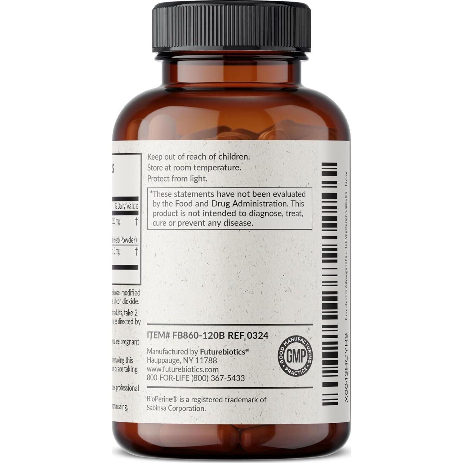 Futurebiotics Futurebiotics Ashwagandha Extra Strength Stress And Mood Support With BioPerine - Non GMO Formula, 120 Vegetarian Capsules