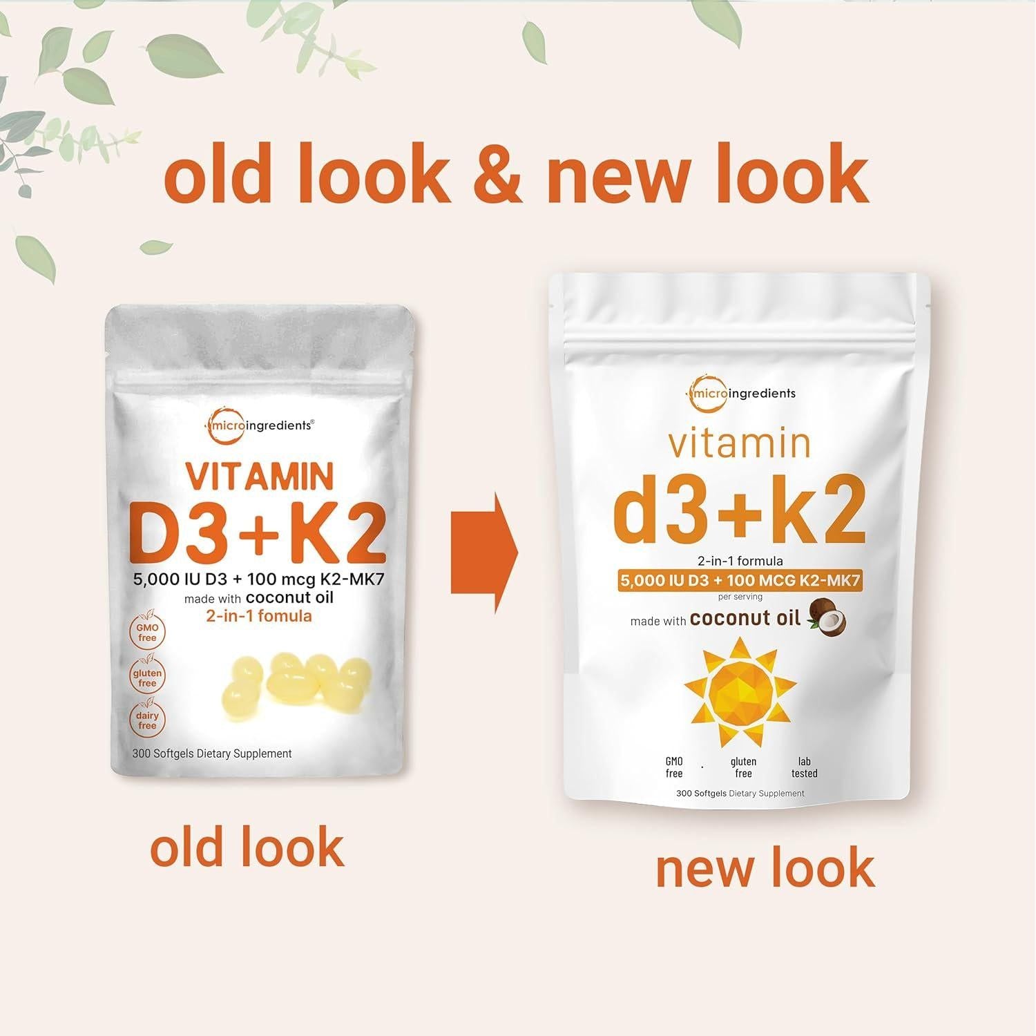 - Micro Ingredients offers an efficiently absorbed 2-in-1 vitamin D3 K2 complex that is contained in coconut oil softgels. Delivers D3 as pure cholecalciferol and K2 in its top grade menaquinone (MK7) form.