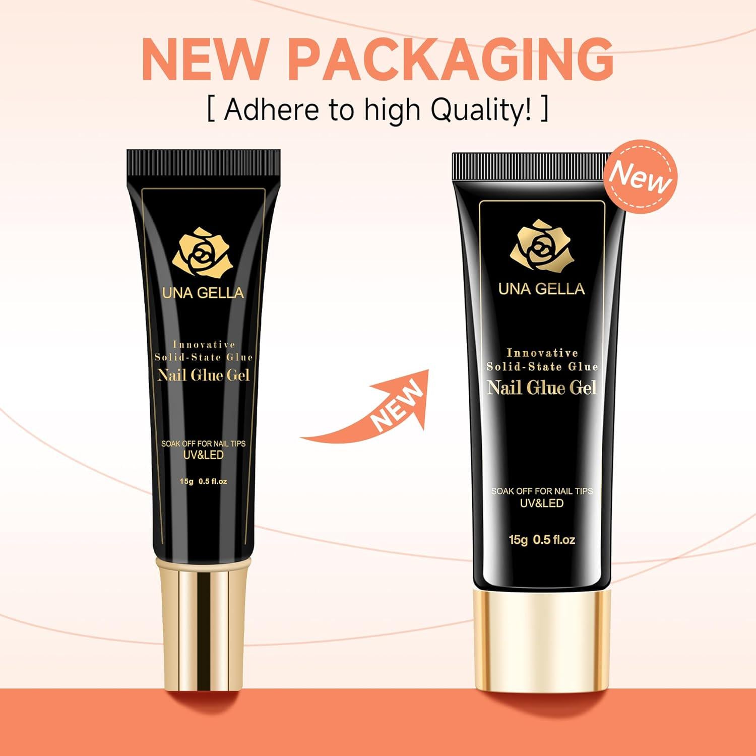 UNA GELLA UNA GELLA Soft Gel Nail Tips Glue Gel Solid Nail Glue Gel 15ml Lamp Curing Needed Solid Soak Off Glue Super Strong Nail Glue Gel For Acrylic Nails Extension Fake Nails Press On Nails