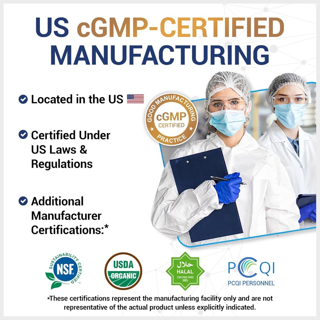- cGMP-Certified Manufacturing: Produced in the USA with strict quality control.