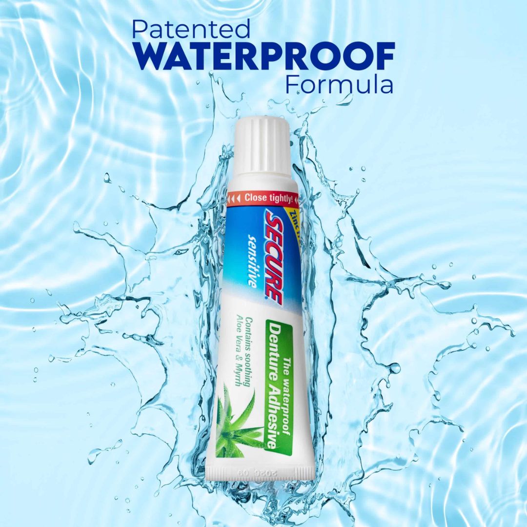 Secure Sensitive Soothing Aloe Vera & Myrrh Waterproof Denture Adhesive Cream is specially formulated for denture wearers with sensitive gums. Infused with the natural soothing properties of Aloe Vera and Myrrh, this adhesive provides a strong, all-day hold while offering gentle care for irritated gums. Its waterproof formula ensures a long-lasting bond without washing away.