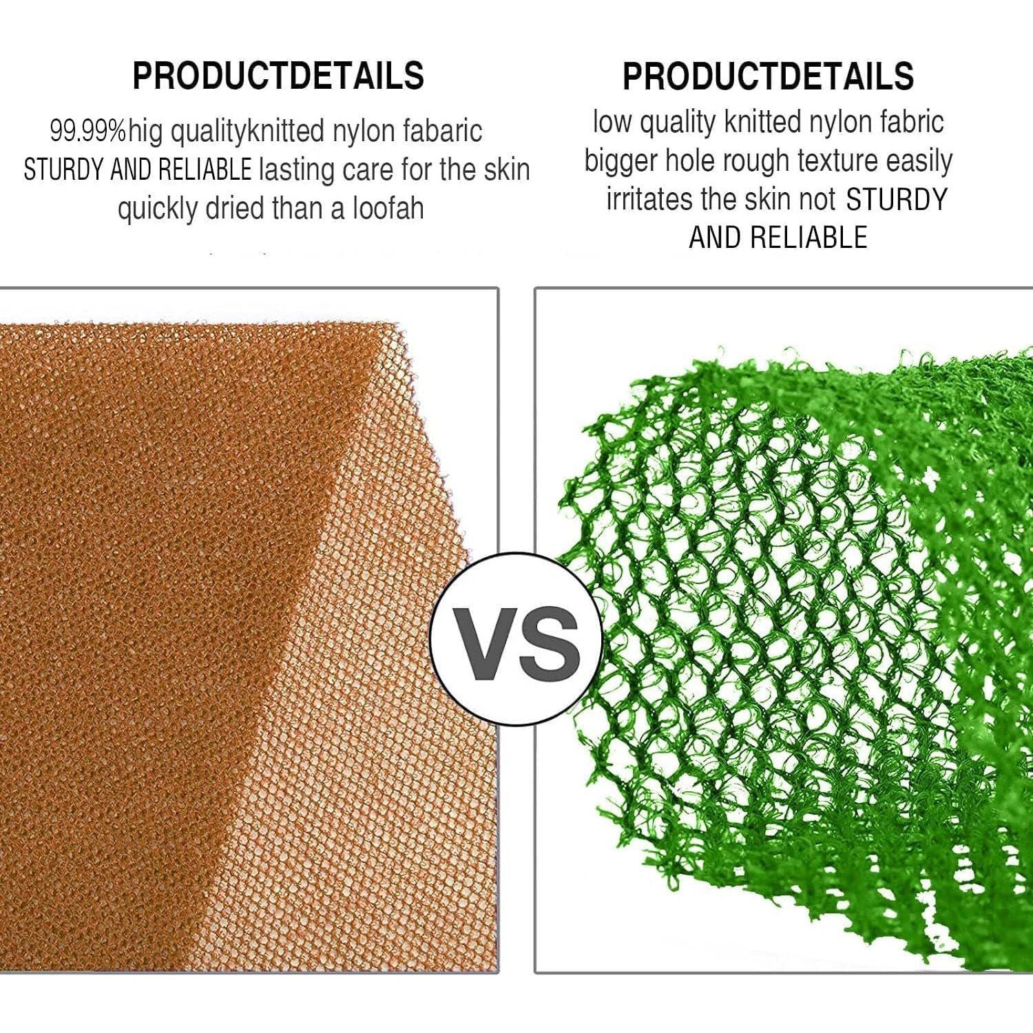 - More efficient cleaning The exfoliating body net is rougher than a ordinary bathing cloth but soft enough for daily body cleansing.easy for removing dead skin, dirt, oil, and eliminating impurities, unclogging pores, suitable for women and men of most ages to use