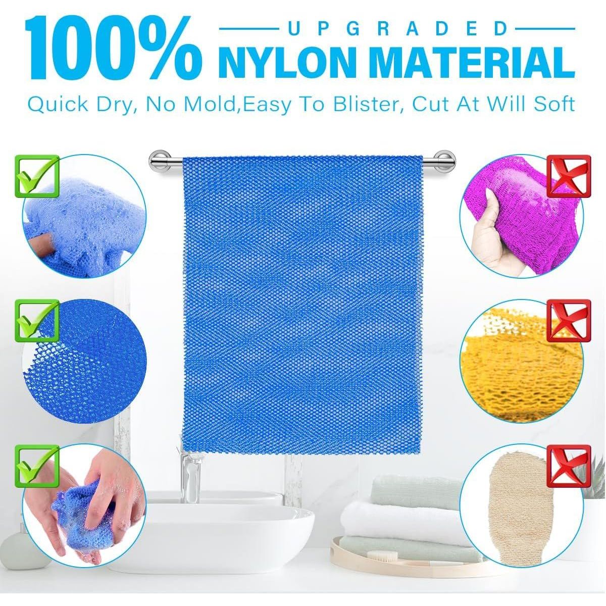 - More efficient cleaning The exfoliating body net is rougher than a ordinary bathing cloth but soft enough for daily body cleansing.easy for removing dead skin, dirt, oil, and eliminating impurities, unclogging pores, suitable for women and men of most ages to use