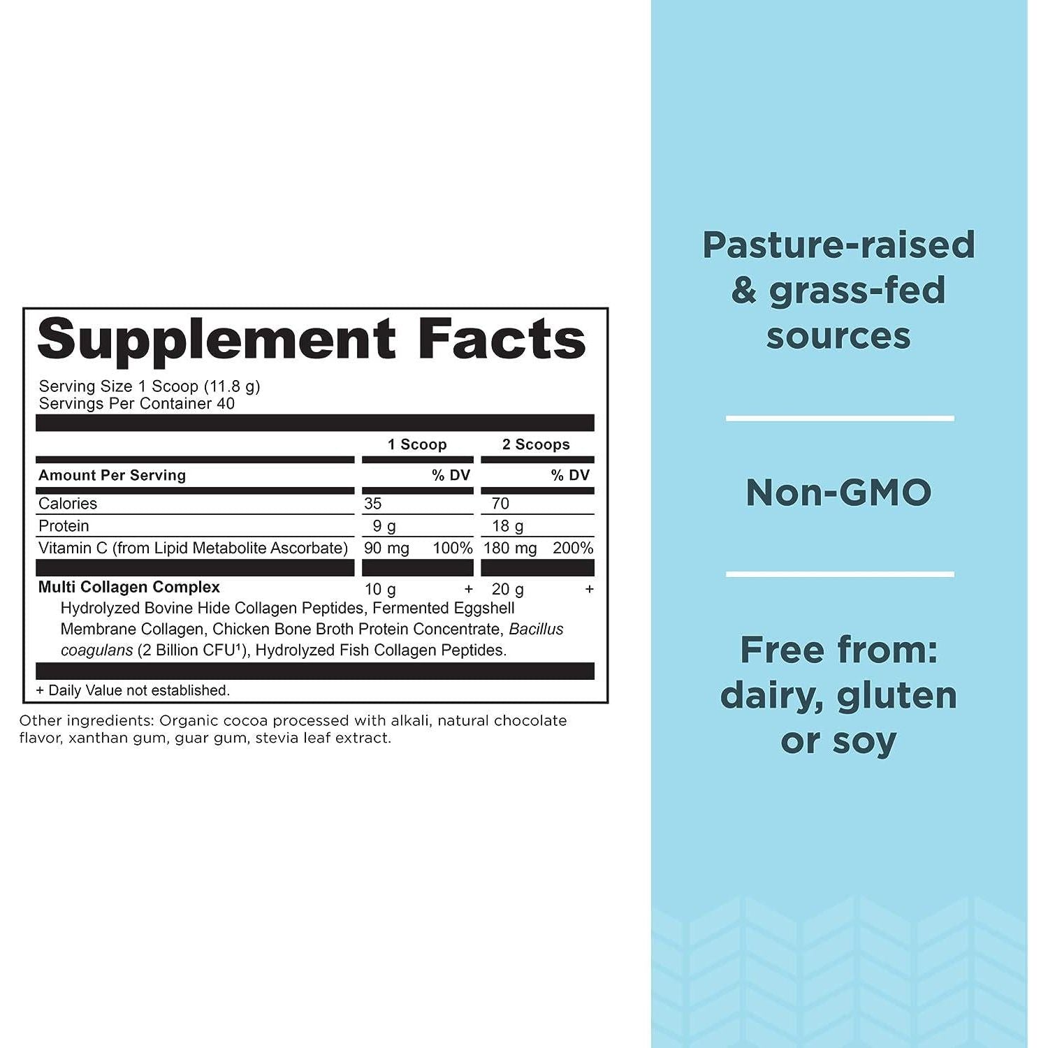 - You will receive (1) tub of Multi Collagen Protein Powder, Chocolate, 40 servings..