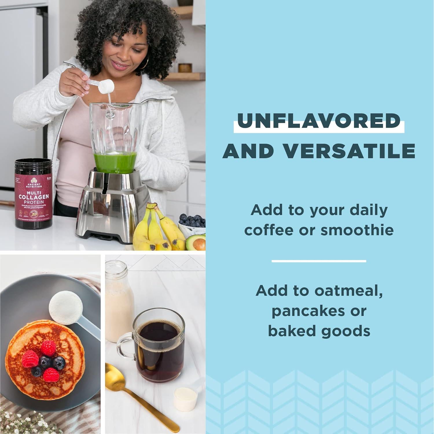 - Ancient Nutrition Collagen Powder Protein with Probiotics, Multi Collagen, Unflavored, 60 Servings, Hydrolyzed Peptides for Skin & Gut Health