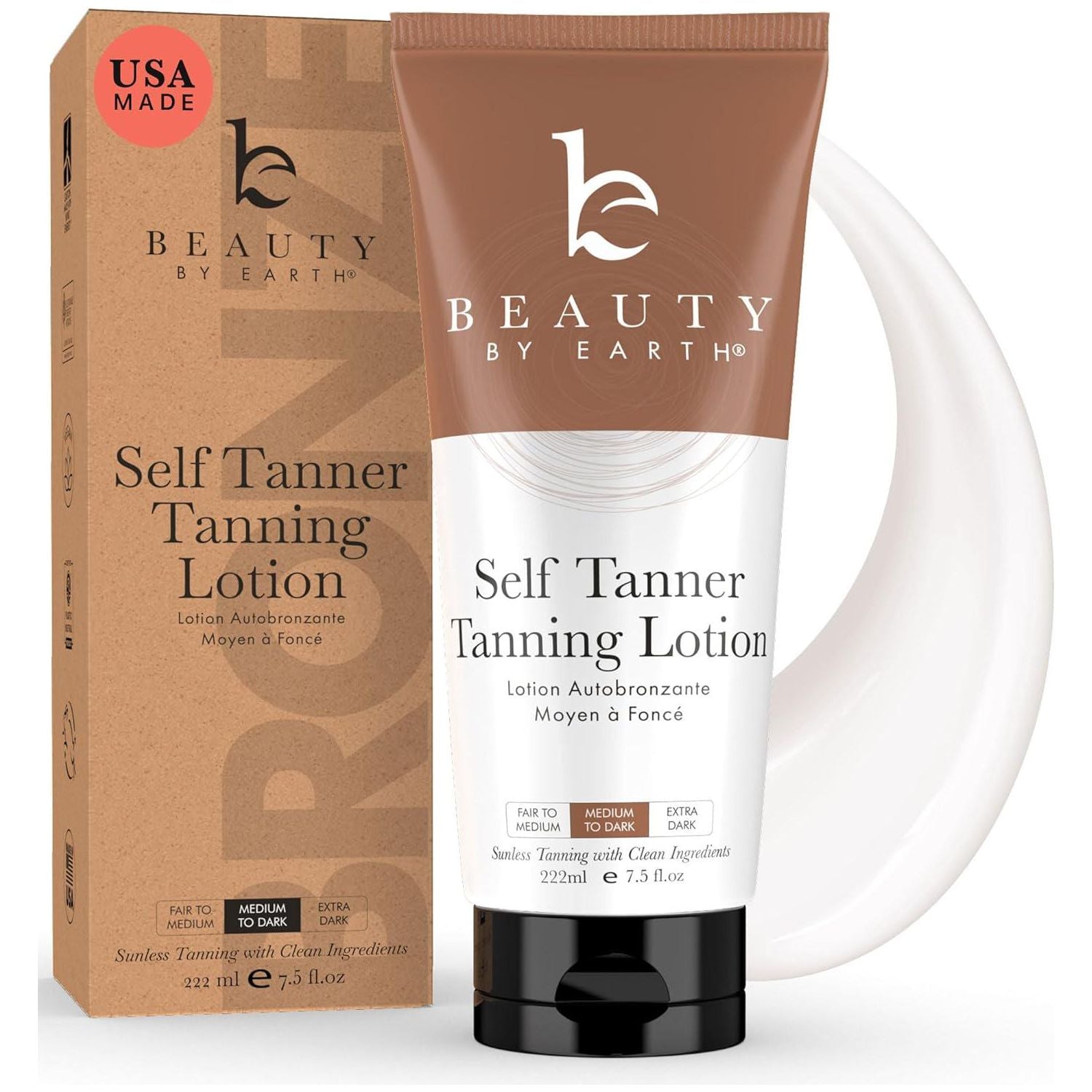 - Beauty by Earth Beauty By Earth Self Tanner - USA Made With Natural And Organic Ingredients, Moisturizing Self Tanning Lotion With Aloe Vera And Coconut For A Natural Glow, Streak-Free Fake Tan, Medium To Dark