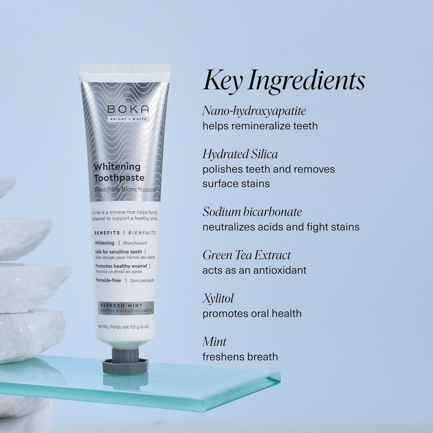 Boka Boka Fluoride Free Toothpaste Nano Hydroxyapatite, Helps Remineralize, Appropriate For Sensitive Teeth, Whitening - For Adult, Kids Oral Care - Refresh Mint Flavor, 4 Fl Oz 1Pk