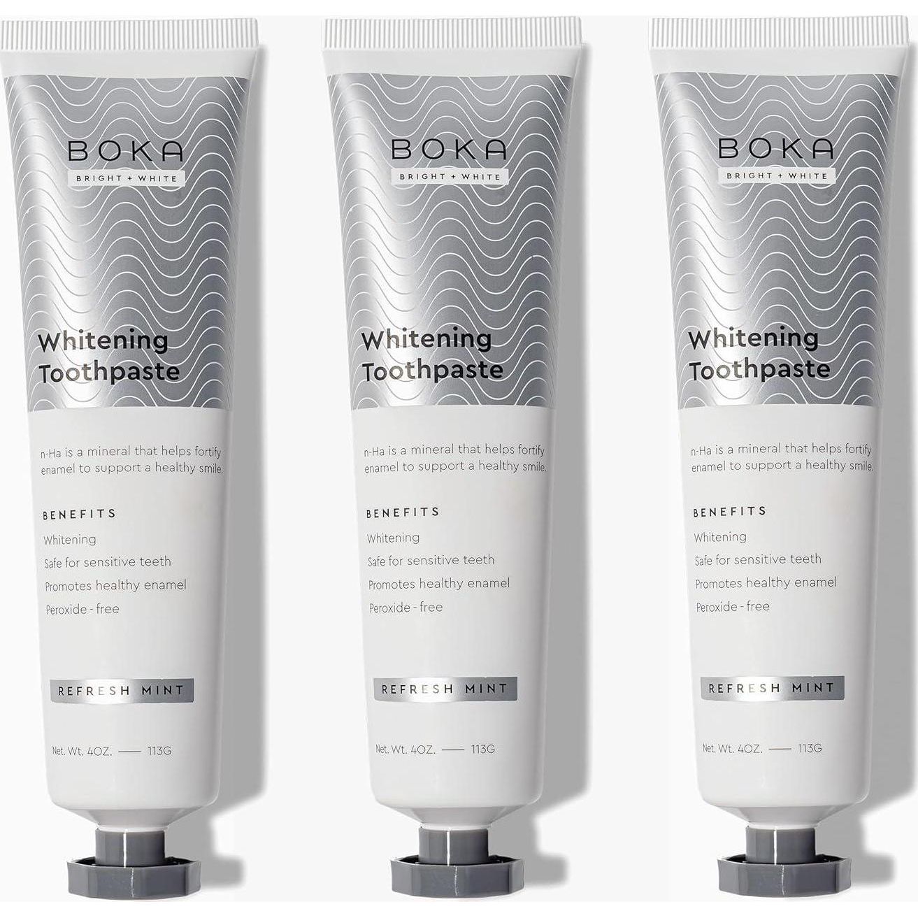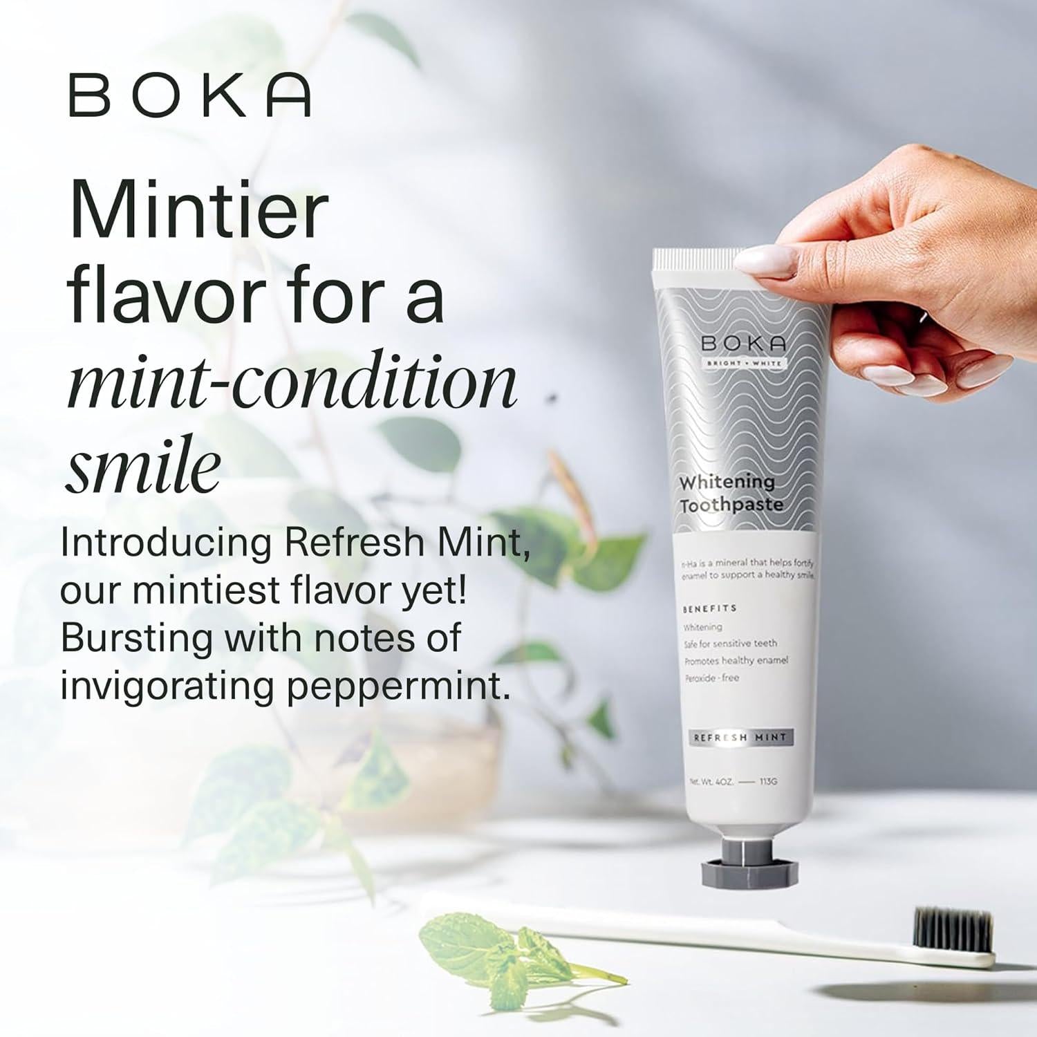- Boka Fluoride-Free Toothpaste, Nano Hydroxyapatite for Remineralization, Whitening, Refresh Mint Flavor, 4oz, 3-Pack
