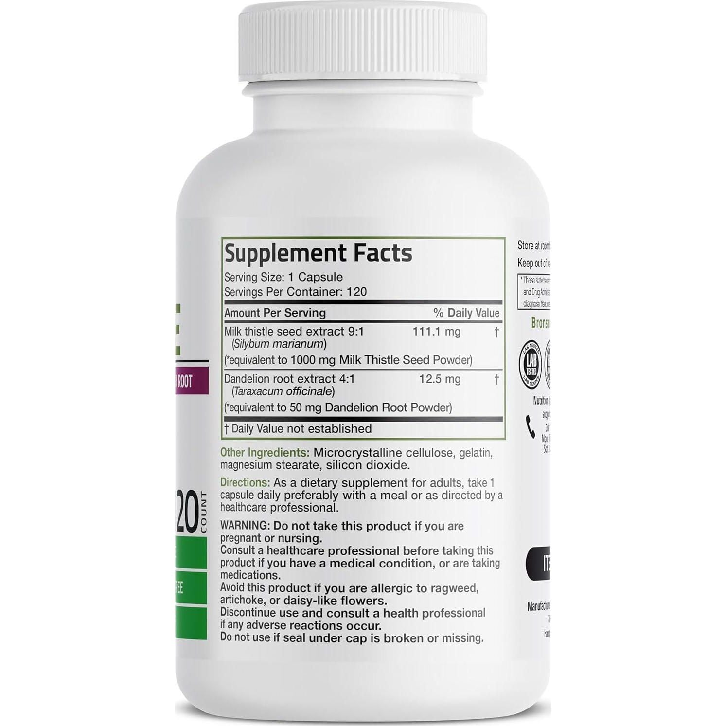 - Bronson Bronson Milk Thistle Silymarin Marianum And Dandelion Root Liver Health Support, Antioxidant Support, Detox, 120 Capsules