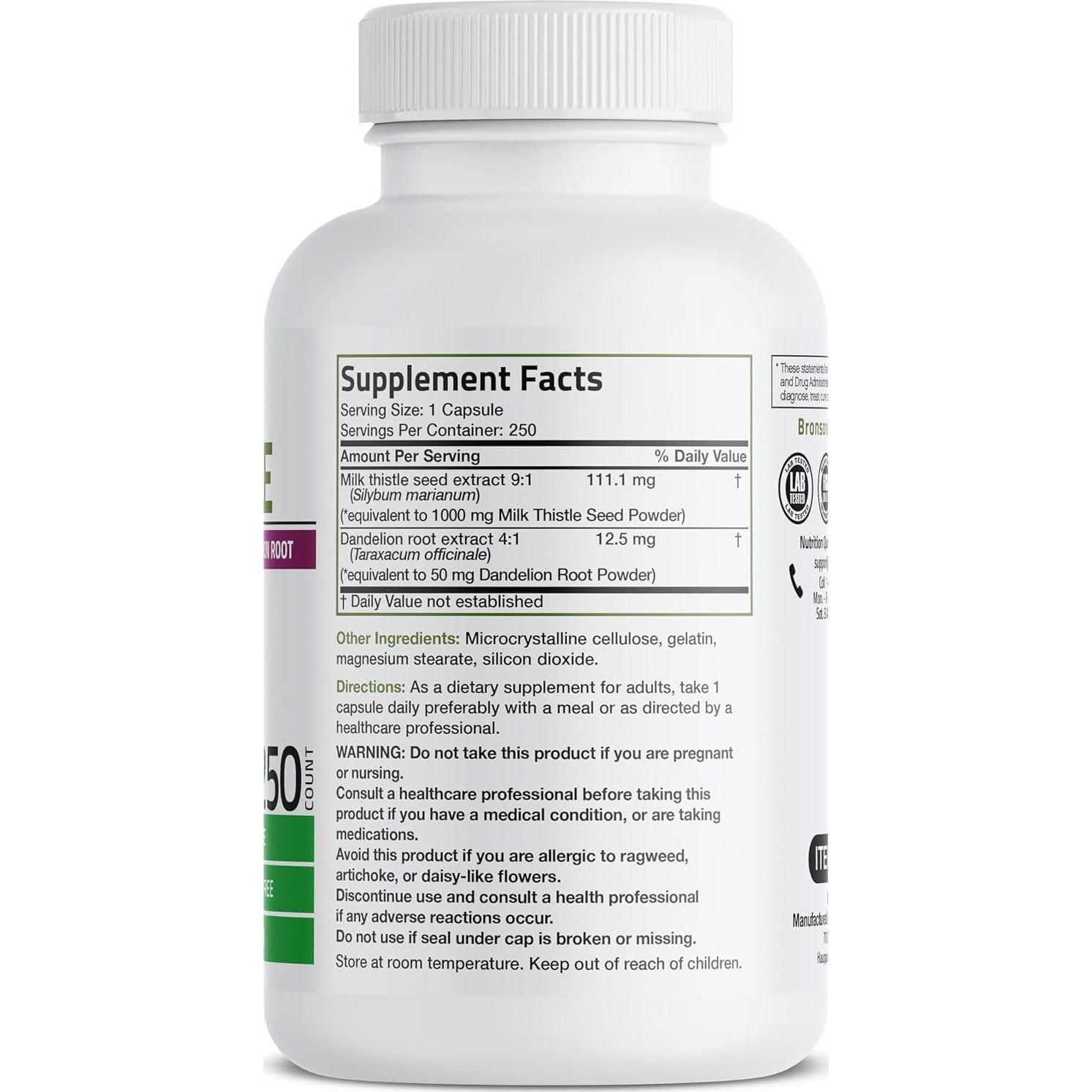 - Bronson Milk Thistle, Silymarin Marianum & Dandelion Root, Liver Health & Antioxidant Support, Detox, 250 Capsules