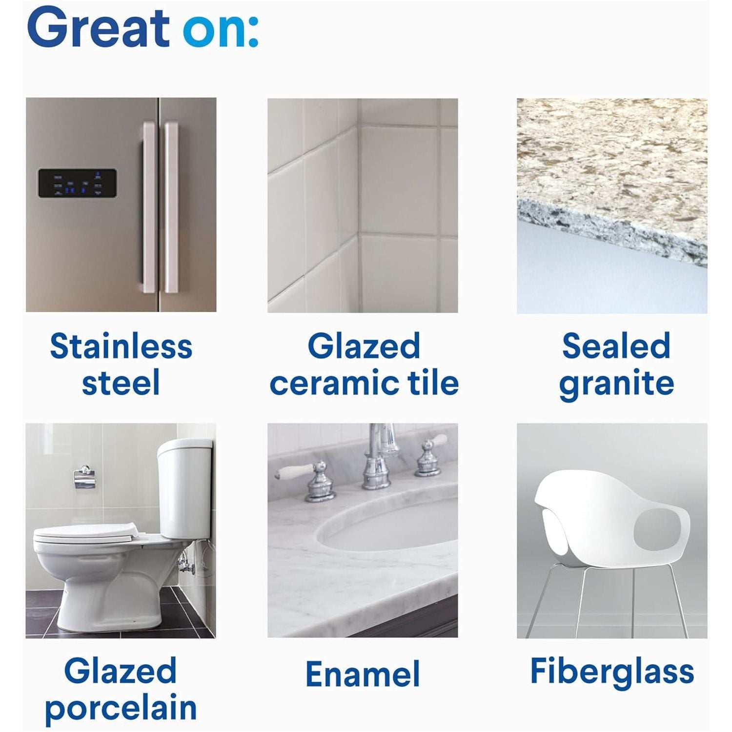 - MULTI SURFACE CLEAN: Use Clorox Clean-Up on a variety of surfaces like stainless steel, glazed ceramic, sealed granite, glazed porcelain, enamel and fiberglass; avoid prolonged contact with porcelain