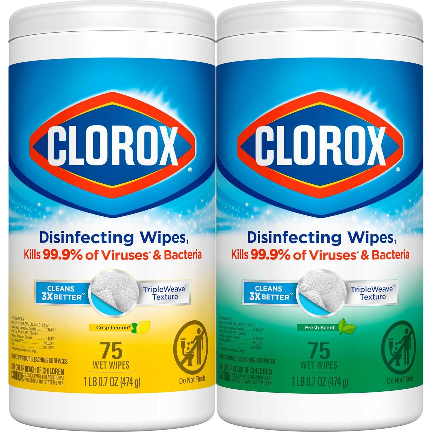 - Clorox Disinfecting Wipes, Value Pack, Bleach-Free Cleaning Wipes, 75 Count Each, Pack of 2 (Packaging May Vary)