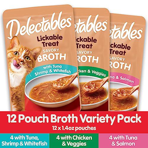 - Delectables Savory Broths Cat Treat Variety Pack 12 Count Lickable Wet Cat Treats in One Pack