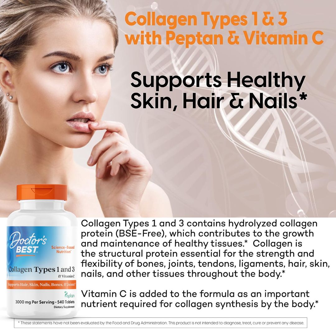 - Doctor's Best Collagen Types 1 & 3 Vitamin C 3000mg 540 Tablets