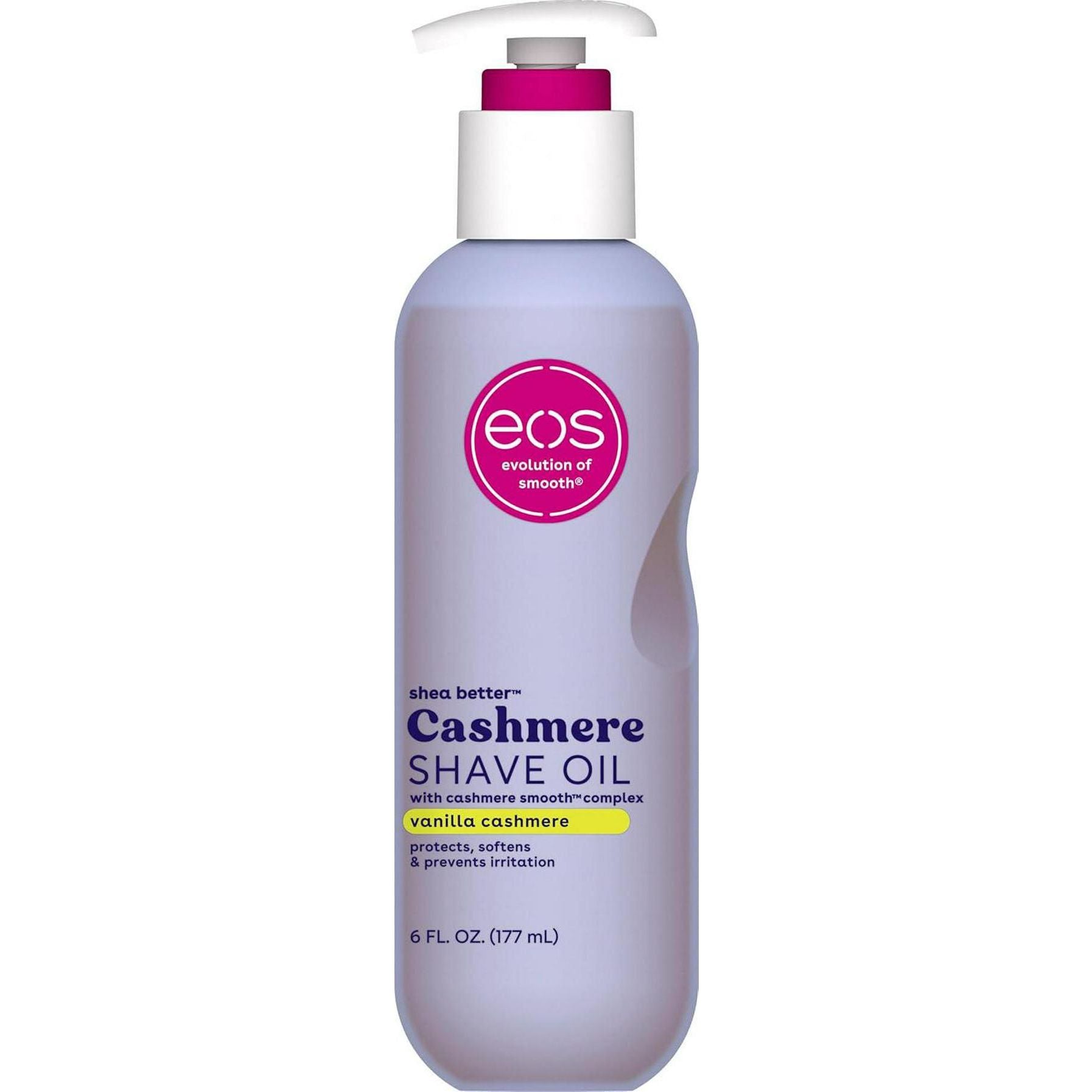 - eos Eos Cashmere Skin Collection Shave Oil, Vanilla Cashmere, Soothing And Moisturizing, Prevents Irritation And Razor Burn, Entire Bikini Area-Approved, 6 Fl Oz Packaging May Vary