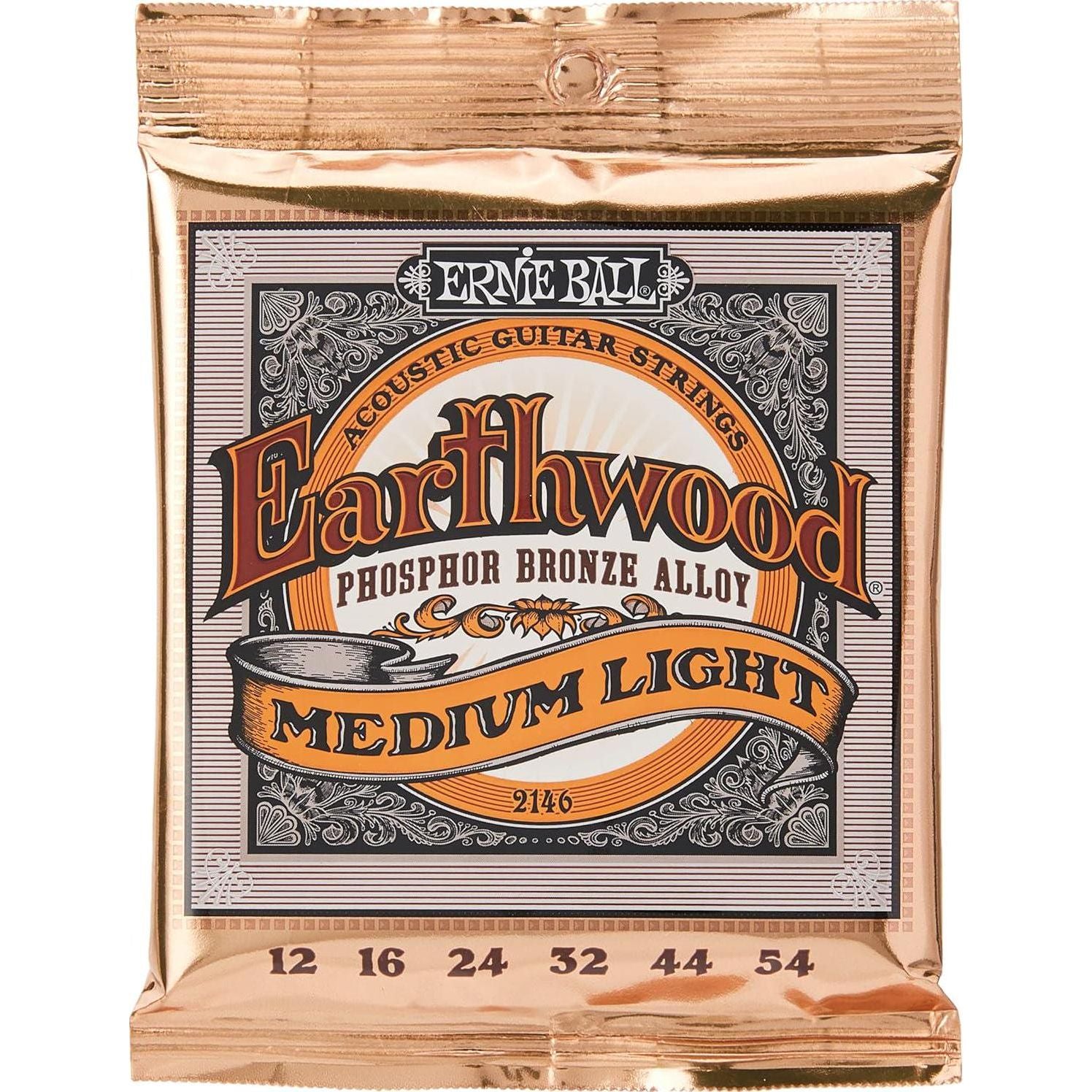 - Ernie Ball Earthwood Medium Light Phosphor Bronze Acoustic Guitar Strings, 12-54 Gauge, P02146