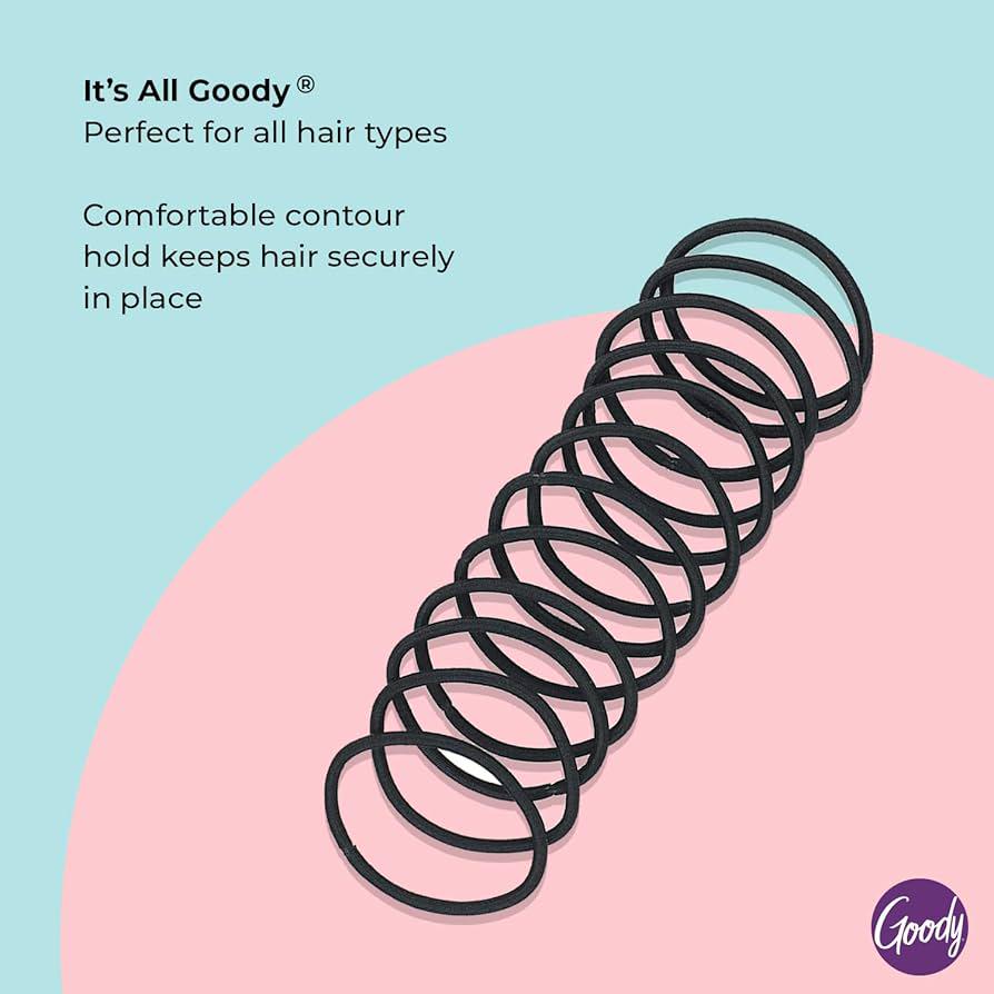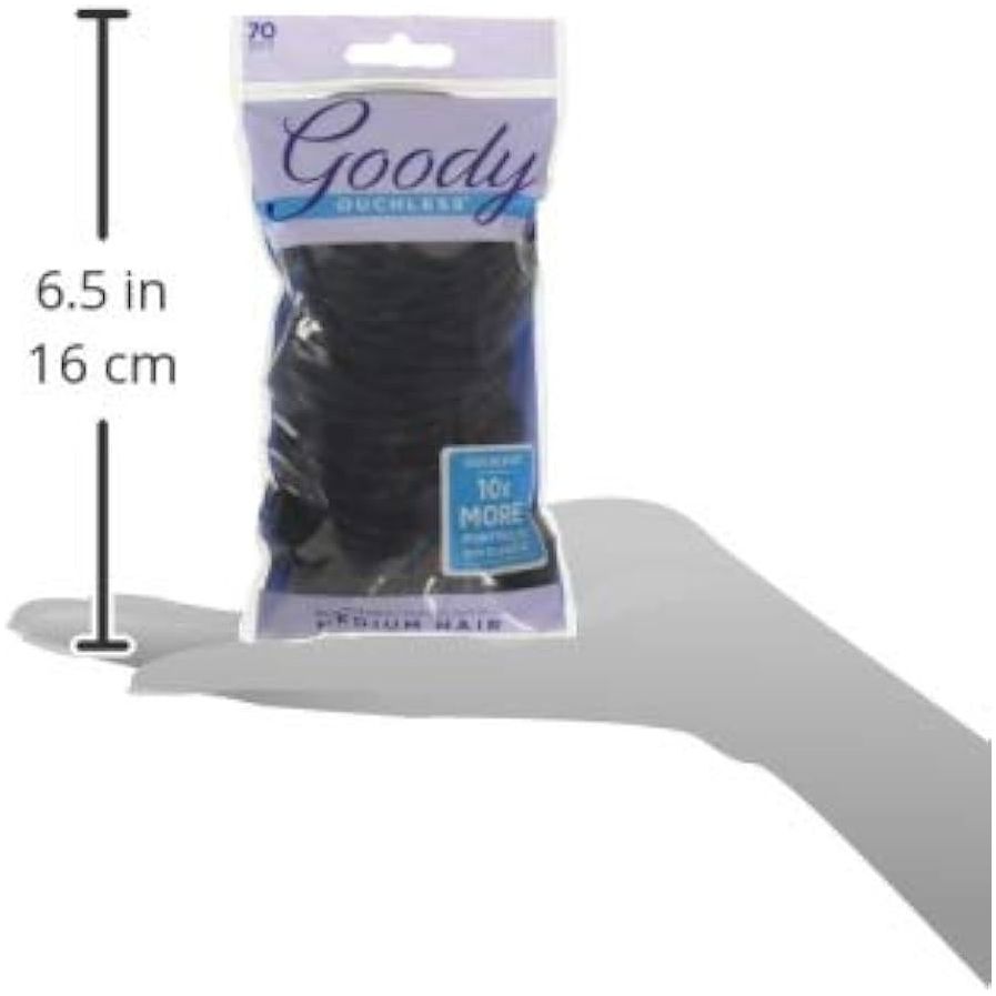 GOODY Goody Ouchless Women's Elastic Hair Ties - 70 Count, Black - 4MM For Medium Hair - Long-Lasting Braids, Ponytails, And More - Pain-Free Hair Accessories