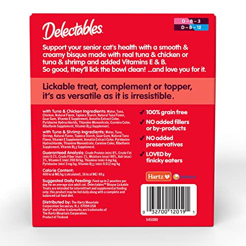 - Hartz Delectables Bisque Wet Cat Treats, Senior Variety Pack, 12 Count, Lickable Soft Texture