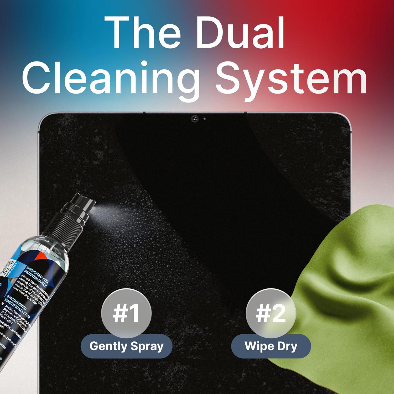 - Koala Eyeglass Lens Cleaner Spray Kit, 1x Cleaner Bottle & 1x Microfiber Cloth, Alcohol-Free, Made in USA