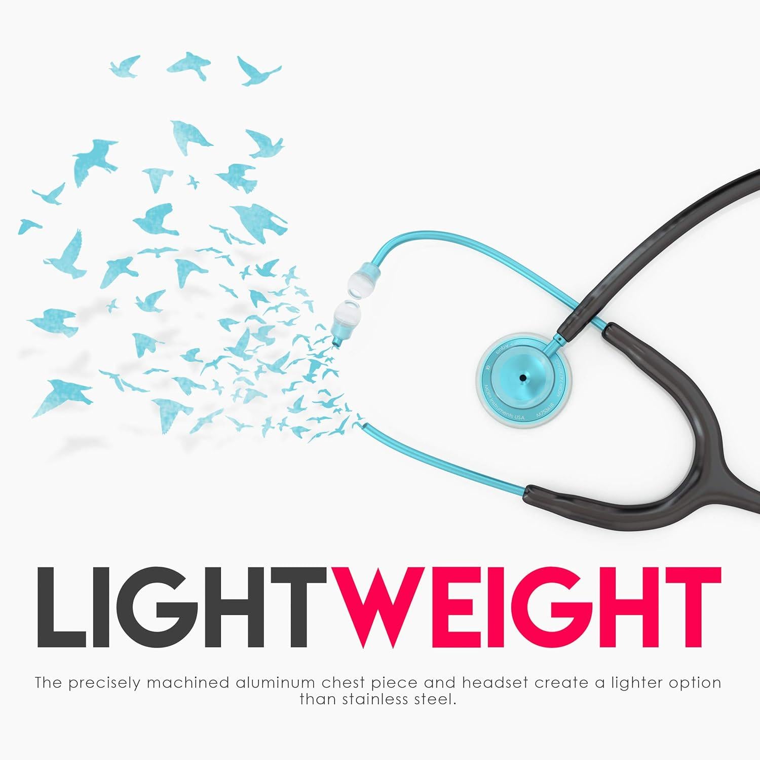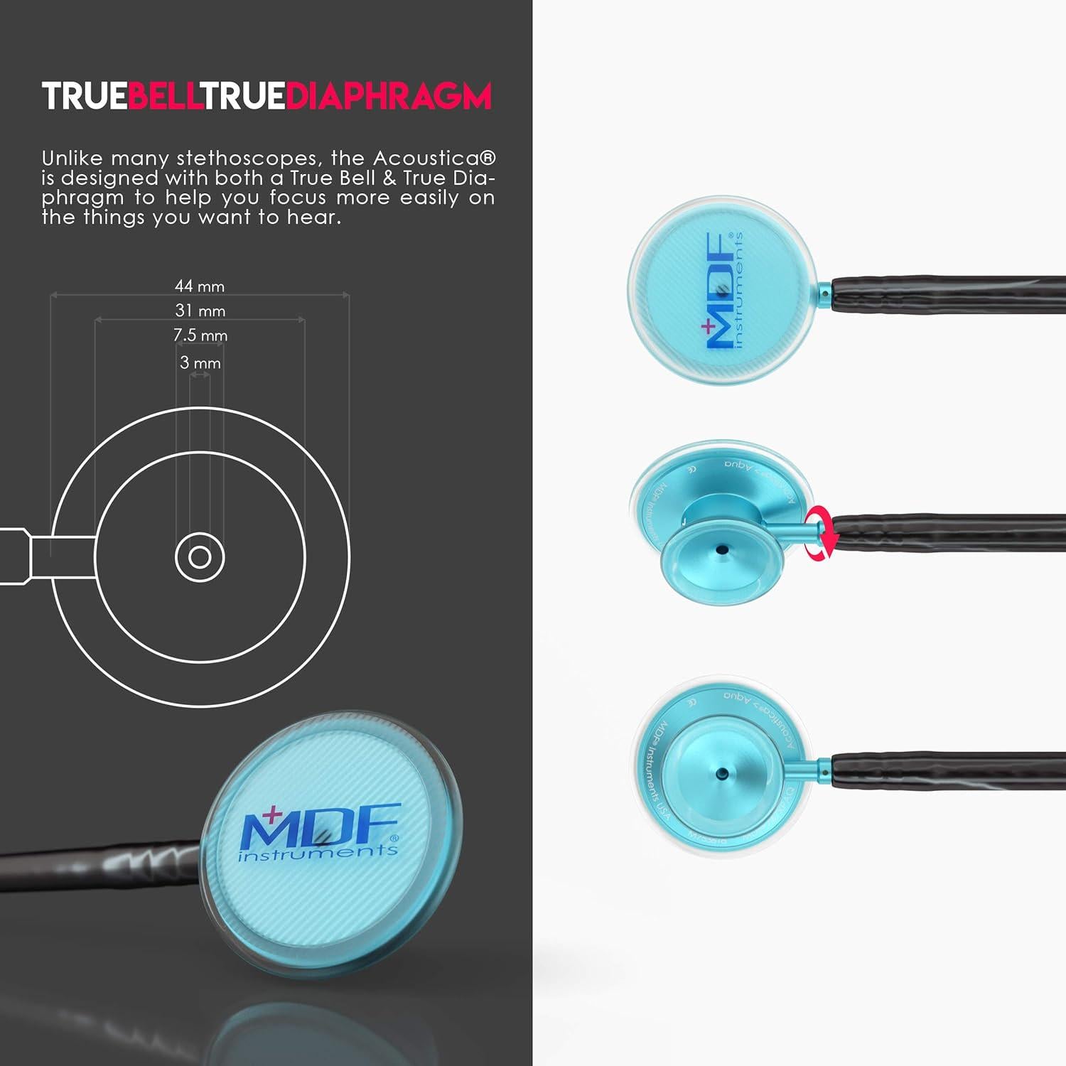 MDF Instruments Acoustica Lightweight Stethoscope, Dual Head, Black Tube, Aqua Chestpiece, For Doctors & Nurses
