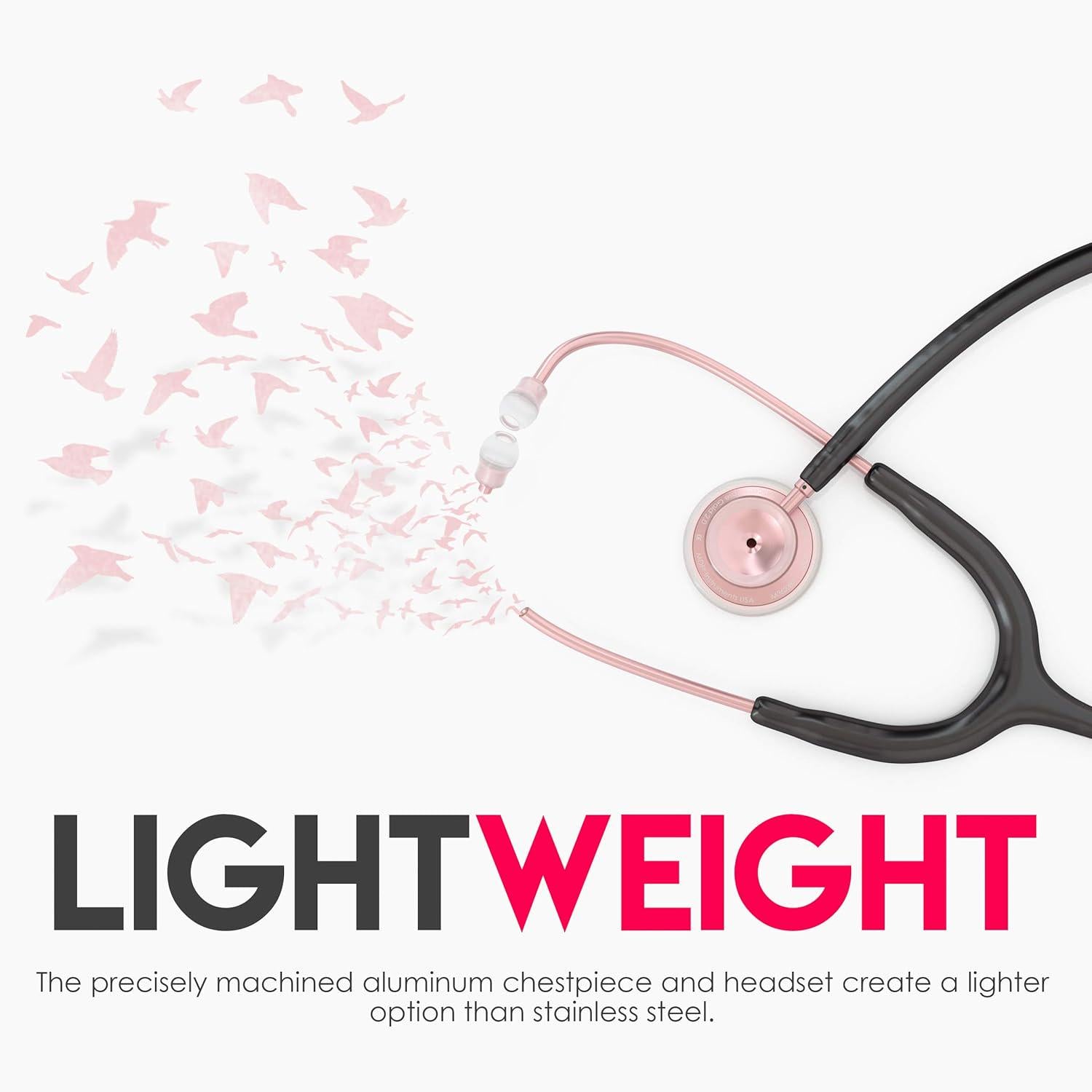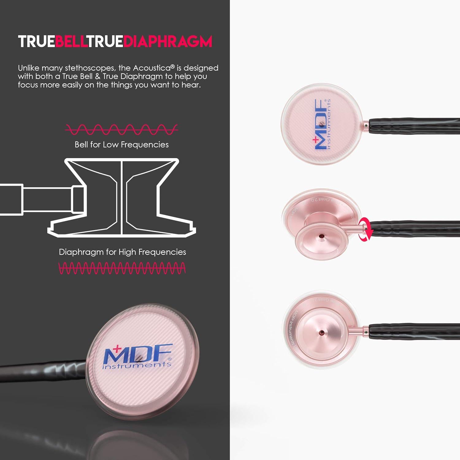 - MDF Instruments Acoustica Lightweight Stethoscope, Adult Dual Head, Black Tube, Rose Gold Chestpiece, For Doctors & Nurses