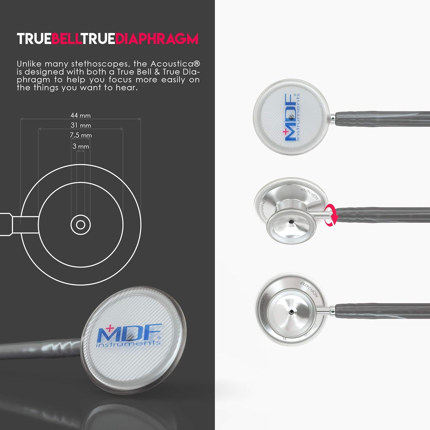 - MDF Instruments Acoustica Lightweight Stethoscope, Dual Head, Grey Tube, Silver Chestpiece, Adult Use for Doctors, Nurses, Students