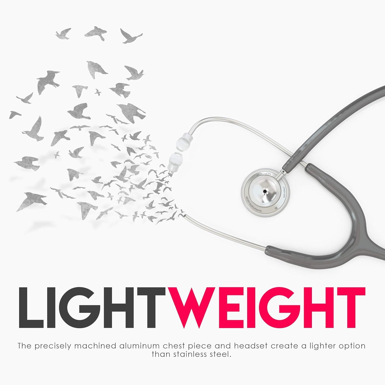 - ALL-PURPOSE LIGHTWEIGHT diagnostic stethoscope that delivers accurate auscultation of heart, lung, and stomach (gastrointestinal, bowel, etc.), blood pressure flow (Korotkoff) sounds with acoustic integrity and clarity in doctor, nurse, student, etc. clinical settings or home settings.