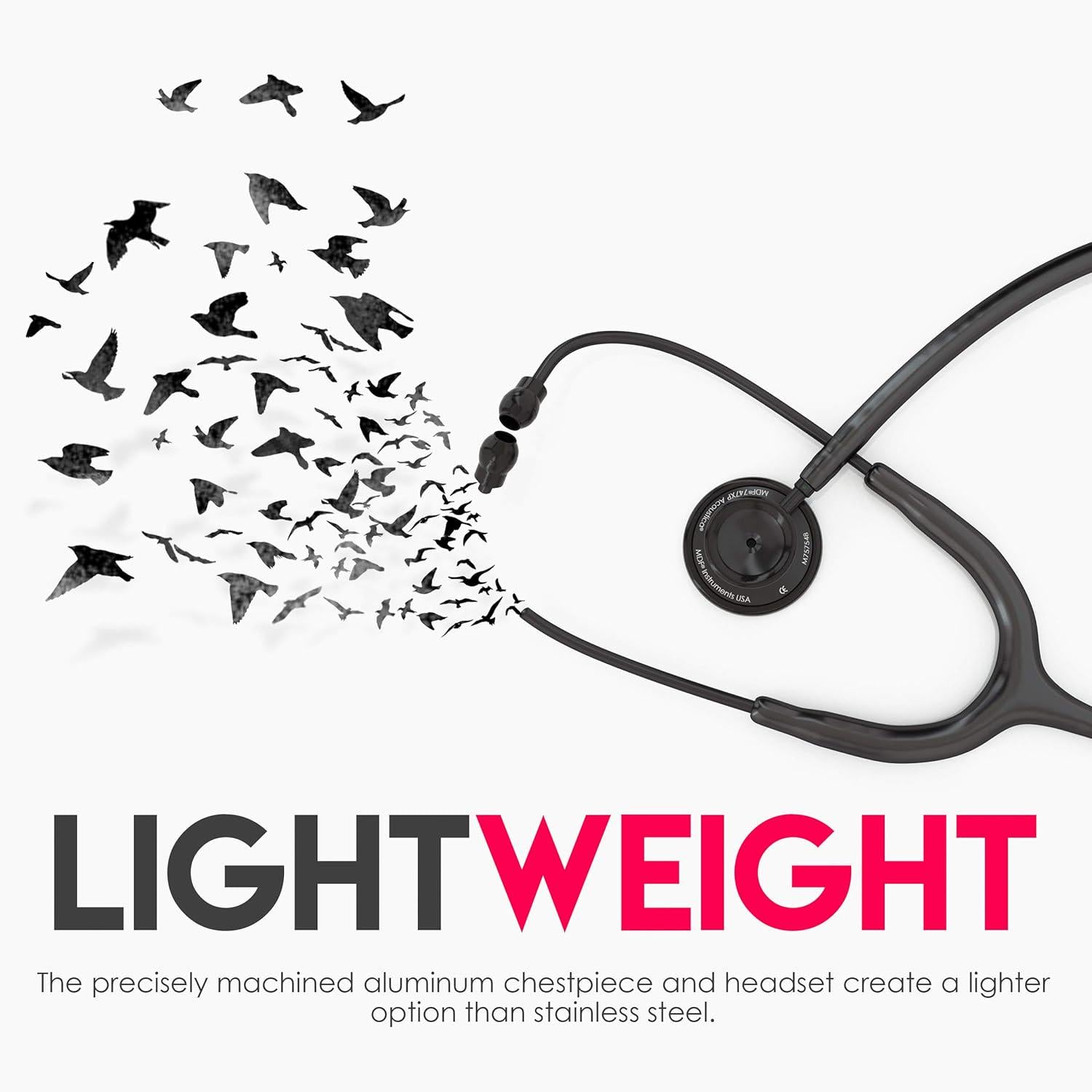 - ALL-PURPOSE LIGHTWEIGHT diagnostic stethoscope that delivers accurate auscultation of heart, lung, and stomach (gastrointestinal, bowel, etc.), blood pressure flow (Korotkoff) sounds with acoustic integrity and clarity in doctor, nurse, student, etc. clinical settings or home settings.