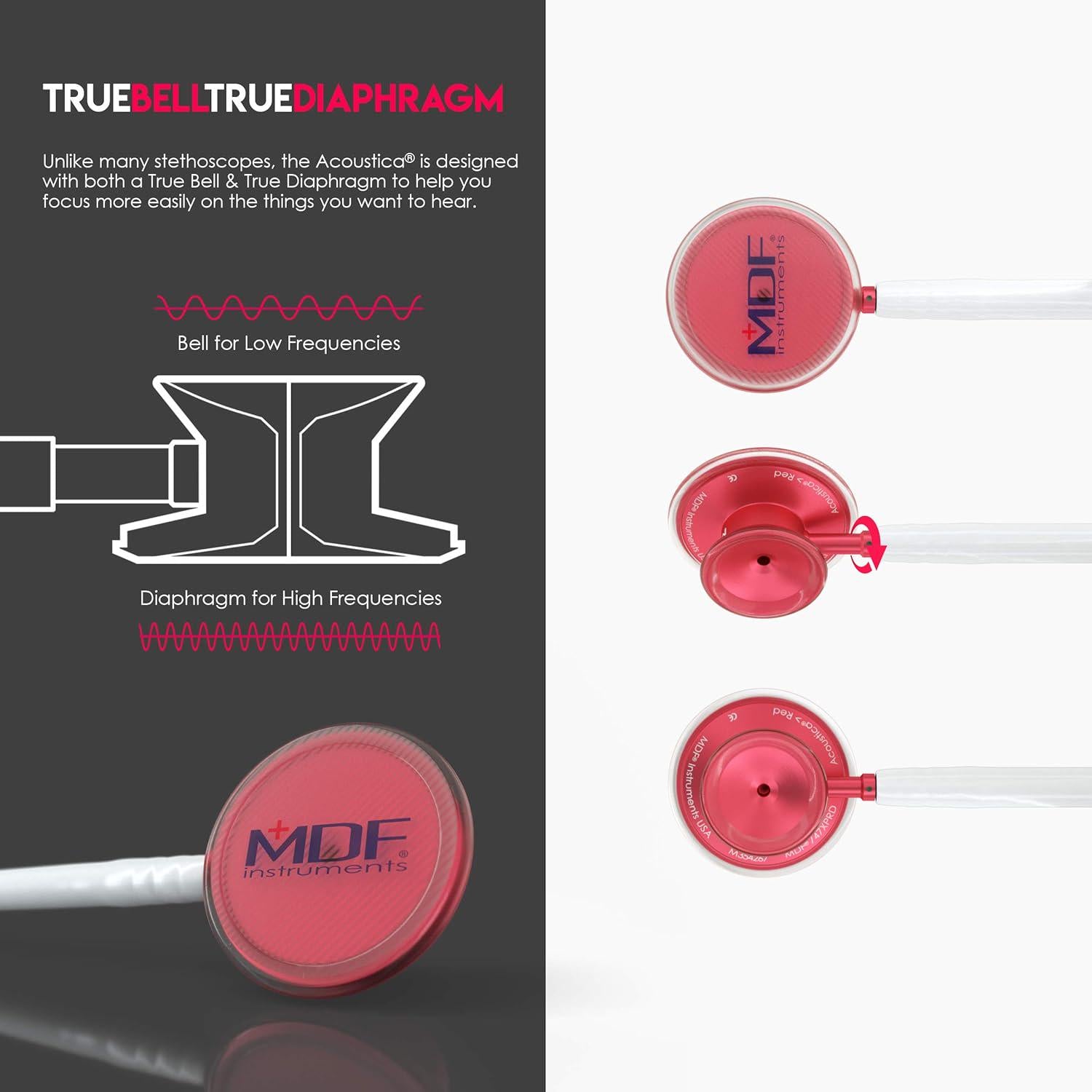 - MDF Instruments Acoustica Lightweight Stethoscope for Doctors, Nurses & Students, Adult Dual Head, White Tube & Red Chestpiece, MDF747XPR29