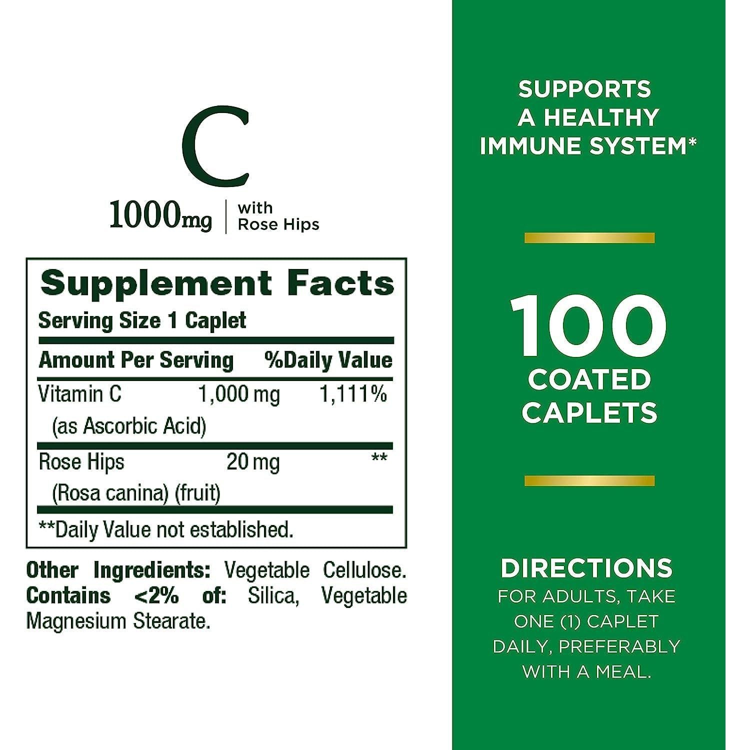 Nature's Bounty Nature's Bounty Vitamin C + Rose Hips, Immune Support, 1000mg, Coated Caplets, 100 Ct