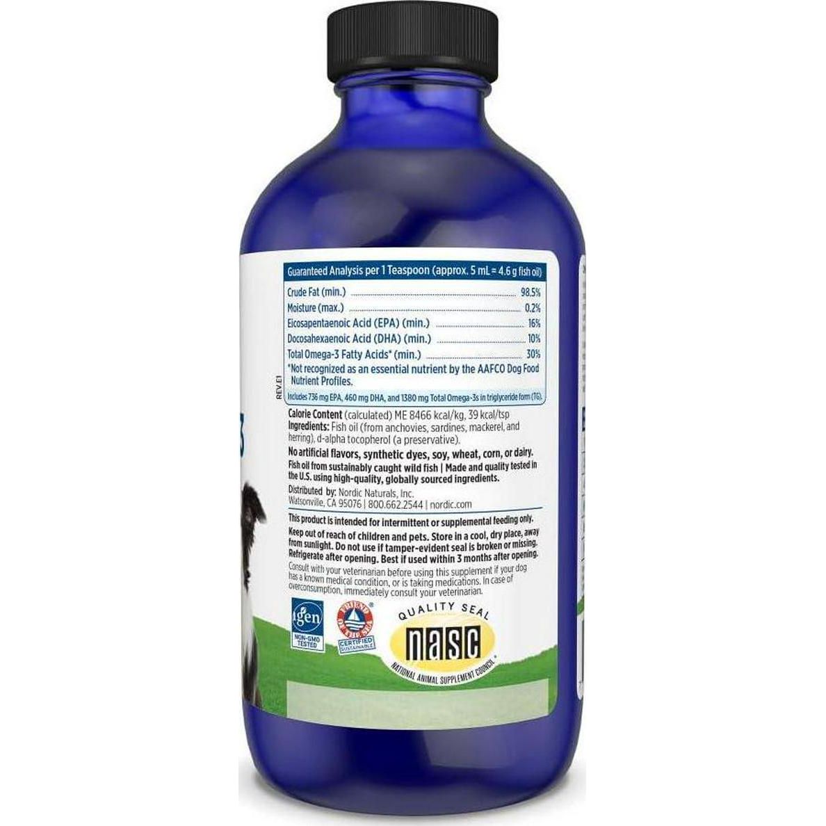 - WHY OMEGA-3 PET - This Nordic Naturals pet product is made with the same exceptional quality oil as our human products, but has been specially formulated for your dog. Omega-3 Pet features omega-3 fish oil in liquid form.