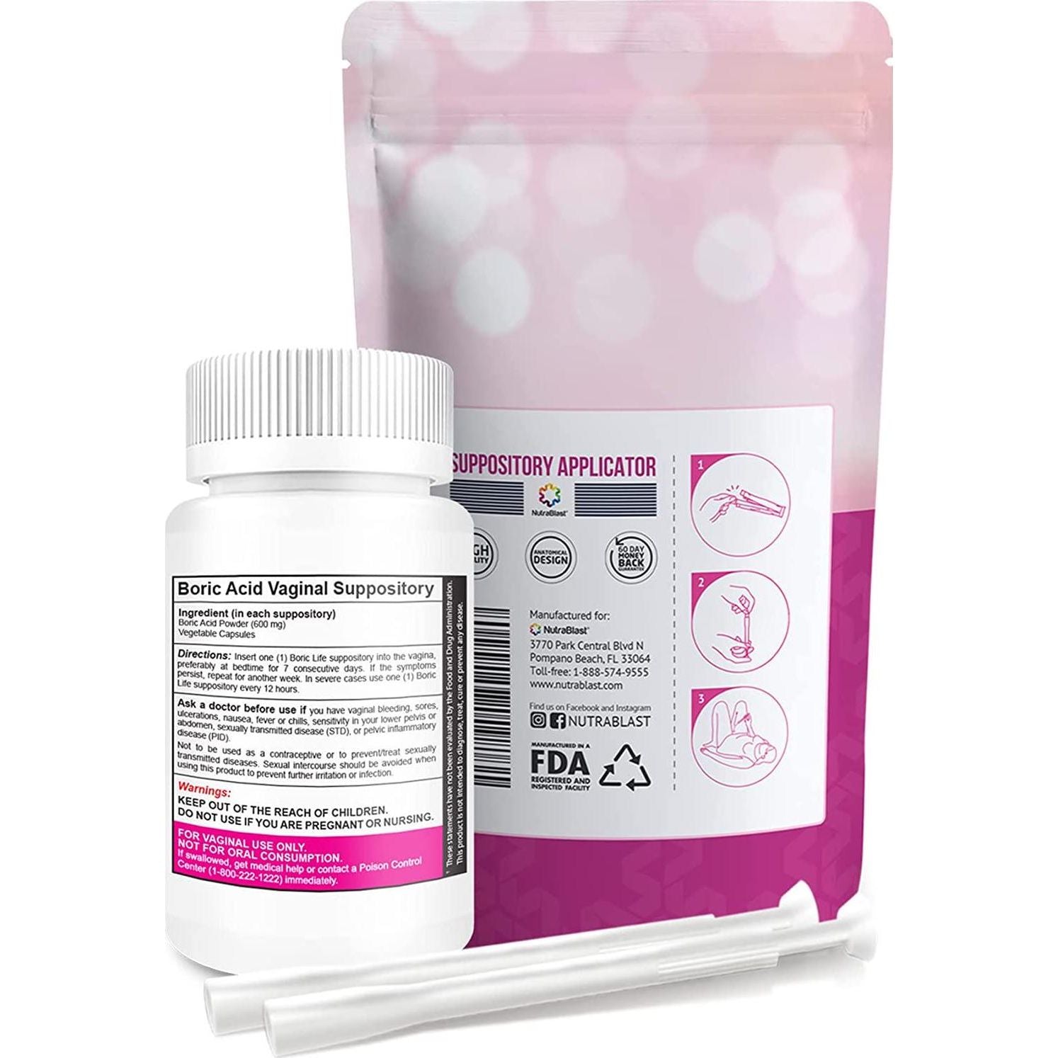- Nutrablast Boric Acid Vaginal Suppositories, 600mg, 30 Suppositories with 15 Applicators, Feminine Care, Made in the USA
