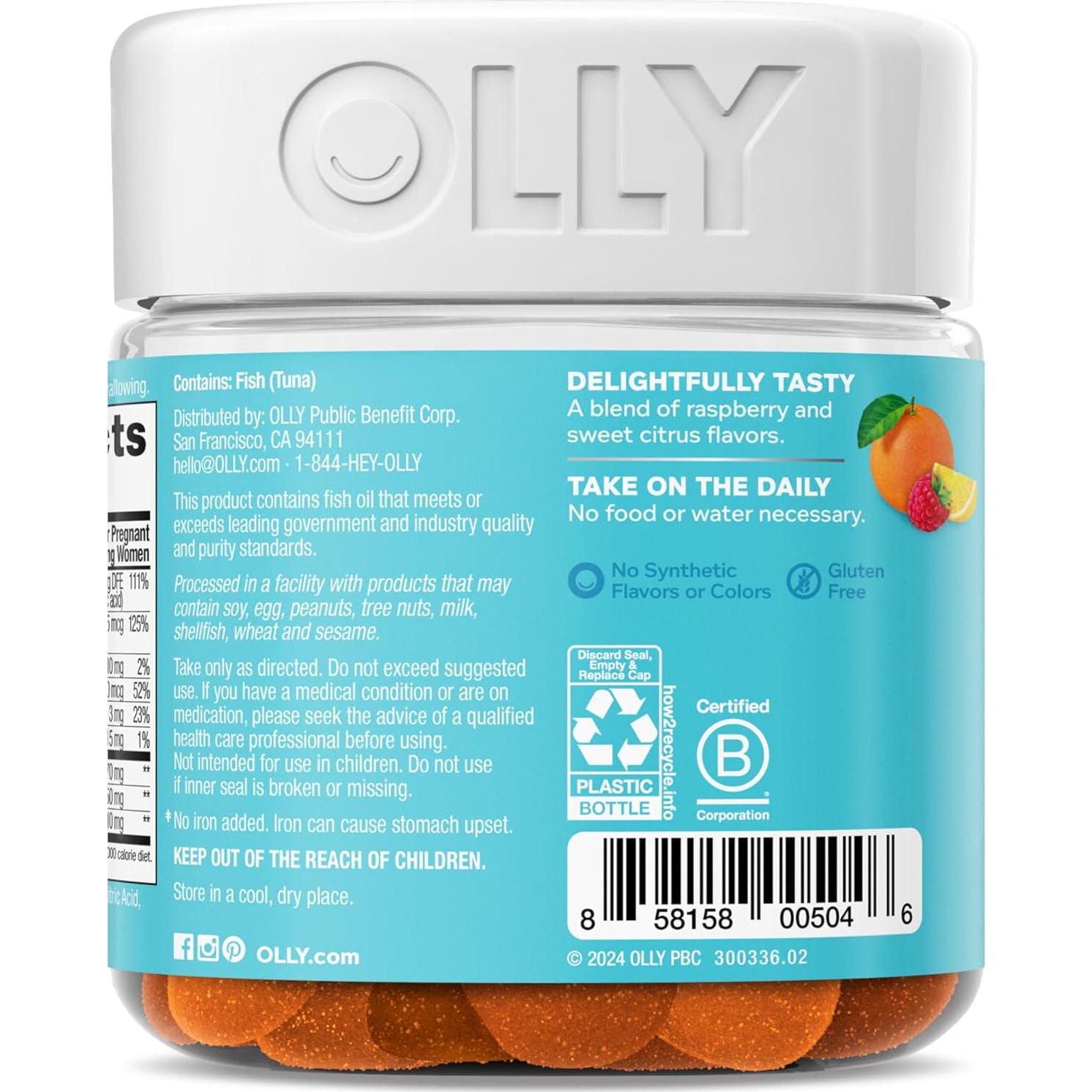 - OLLY OLLY Prenatal Multivitamin Gummy, Supports Healthy Growth And Brain Development, Folic Acid, Vitamin D, Omega 3 DHA, Chewable Supplement, Citrus Berry Flavor, 30 Day Supply - 60 Count