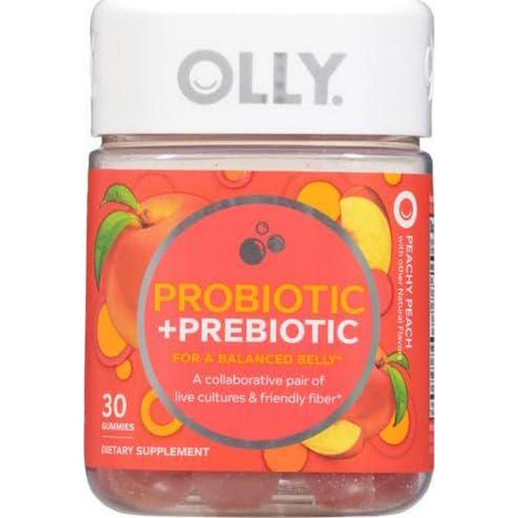 - Olly Probiotic Prebiotic Gummies, Digestive Support, 500 Million CFUs, Peach, 30 Day Supply
