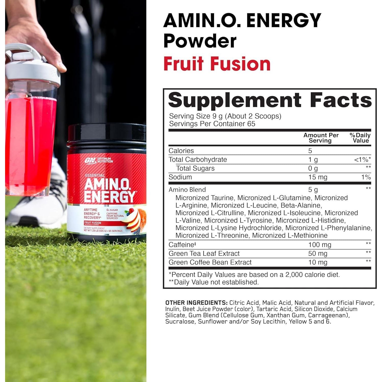 Optimum Nutrition Amino Energy Pre-Workout, Green Tea & BCAA Amino Acids, Keto-Friendly, Fruit Fusion Flavor, 65 Servings