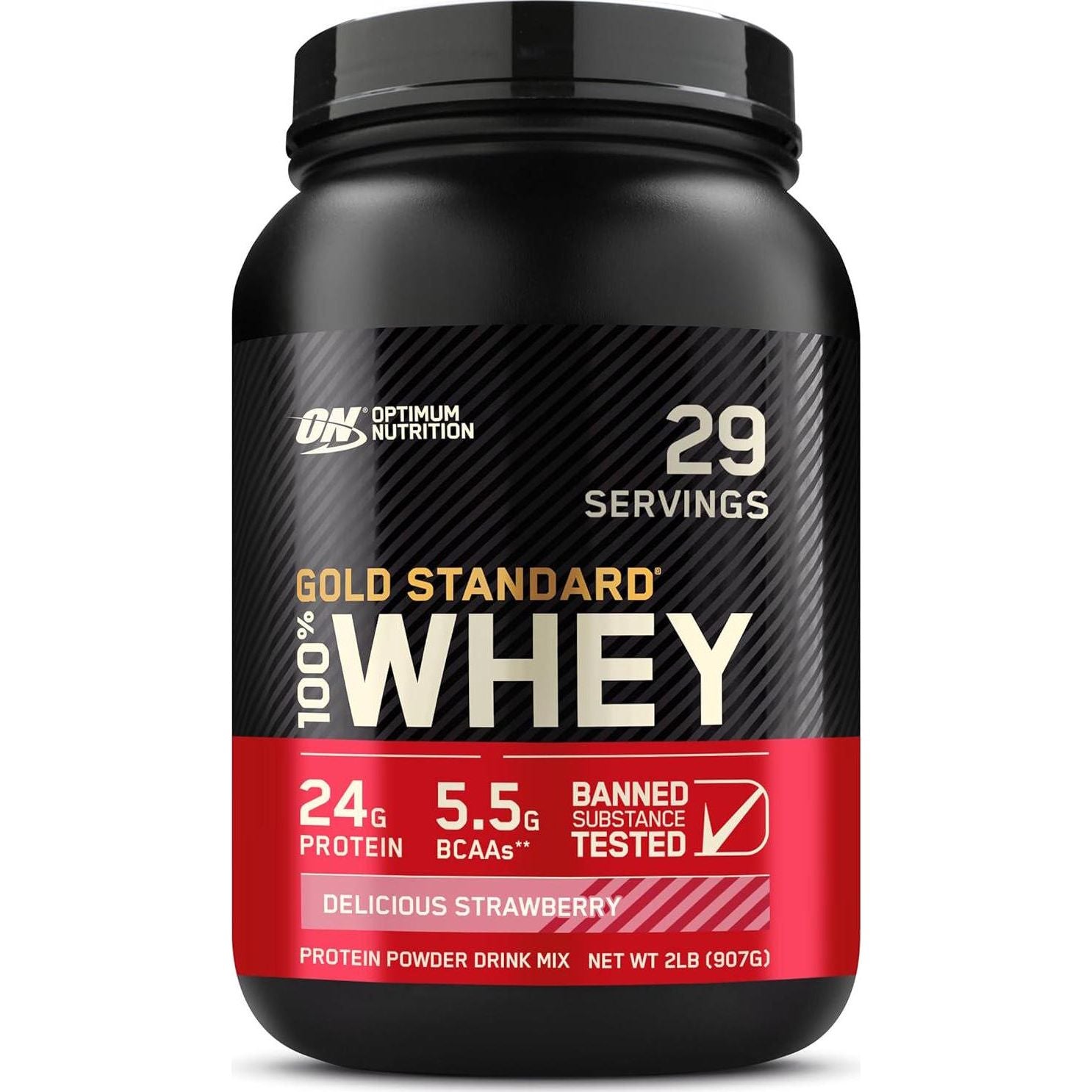 - Optimum Nutrition Gold Standard 100% Whey Protein Powder, Delicious Strawberry, 2lb (Packaging May Vary)