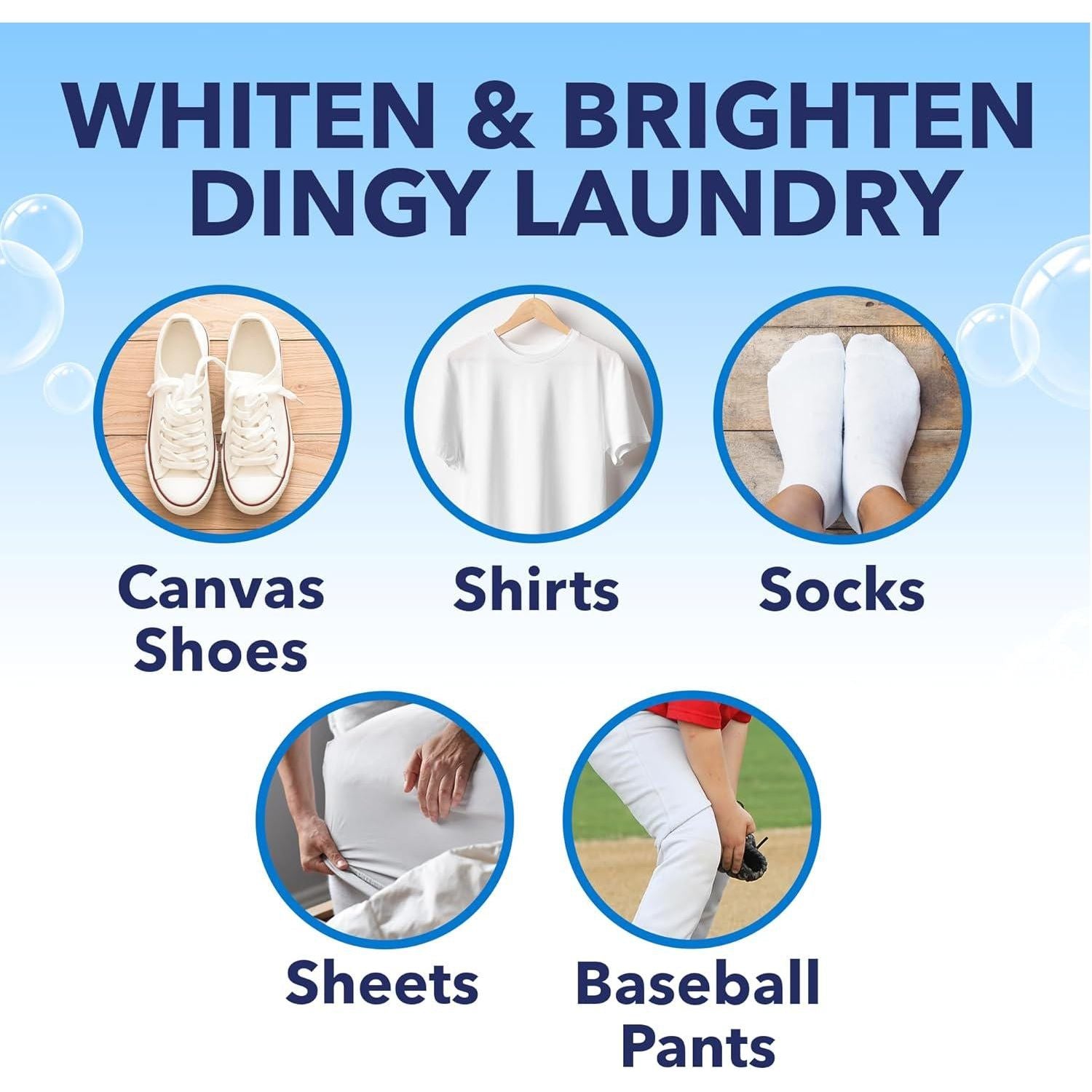 - OxiClean White Revive chlorine bleach alternative is perfect for t-shirts, sheets, underwear, machine-washable canvas shoes, socks, school uniforms and more, so your whites look their best