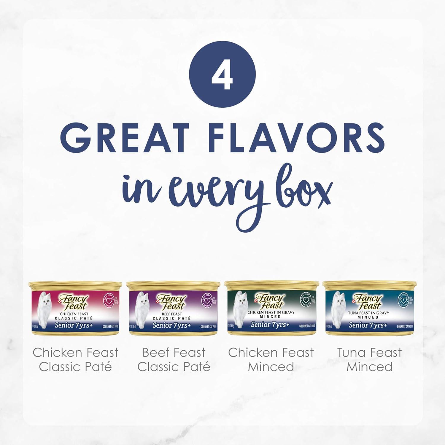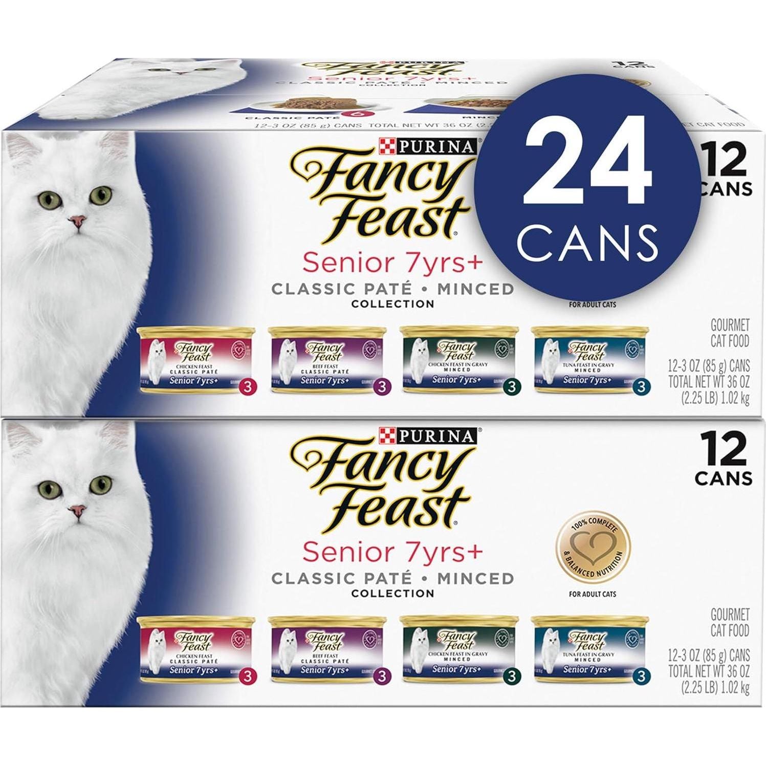 - Fancy Feast Senior 7+ Wet Cat Food Variety Pack Chicken Beef Tuna High Protein 24 Cans 3 oz
