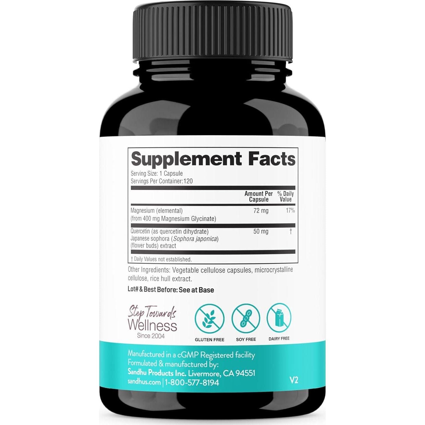 - Sandhu's Magnesium Glycinate, 400mg Capsules with Quercetin, Supports Quality Sleep, Relaxation, Muscle, Bone Health & Immune Support, 120 Count