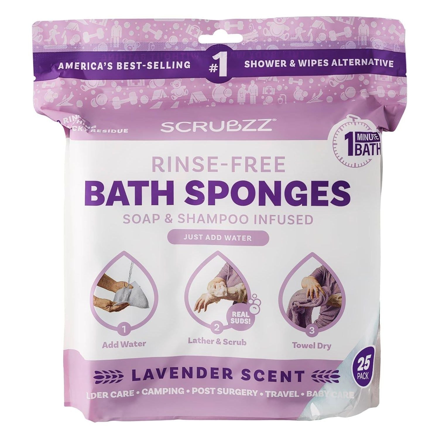 - Scrubzz Scrubzz Disposable No Rinse Bathing Wipes - 25 Pack - All-in-1 Single Use Shower Wipes, Simply Dampen, Lather, And Dry Without Shampoo Or Rinsing (Lavender, 1-Pack)