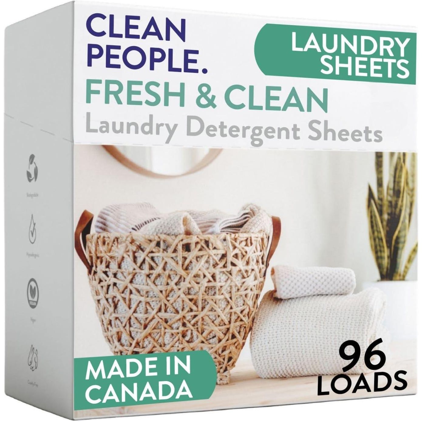 THE CLEAN PEOPLE The Clean People Laundry Detergent Sheets - Laundry Soap - Ultra Concentrated, Recyclable Packaging, Stain Fighting - Fresh Scent, 96 Pack