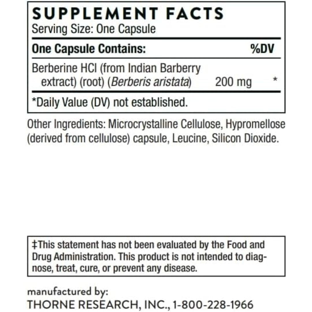 Thorne Berberine 200mg Capsules provide targeted support for healthy blood sugar levels, cardiovascular function, and metabolic wellness. Sourced from barberry root extract, Berberine is a potent plant alkaloid known for its wide range of health benefits, including glucose metabolism, insulin sensitivity, and gut microbiome support.