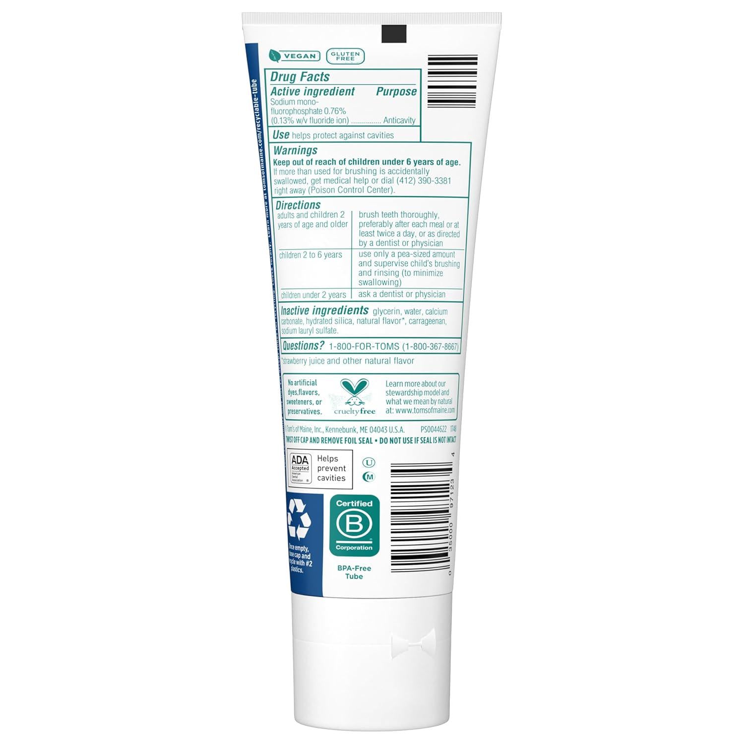- Tom's Of Maine Tom's Of Maine ADA Approved Fluoride Children's Toothpaste, Natural Toothpaste, Dye Free, No Artificial Preservatives, Silly Strawberry, 5.1 Oz. 3-Pack (Packaging May Vary)