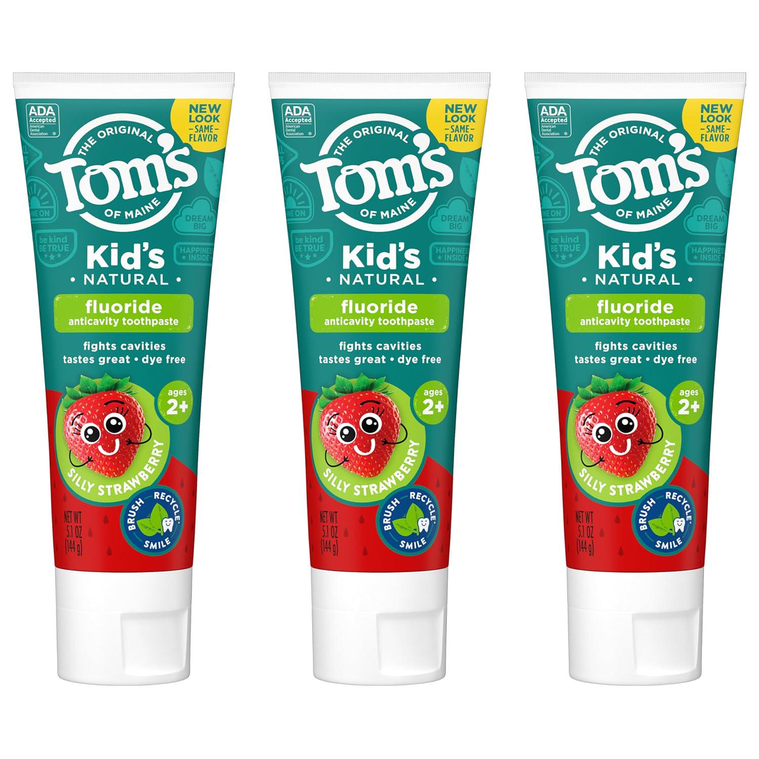 - WHAT YOU'LL GET: Three 5.1-ounce tubes of Tom's of Maine Kids Fluoride Toothpaste in Silly Strawberry Flavor
