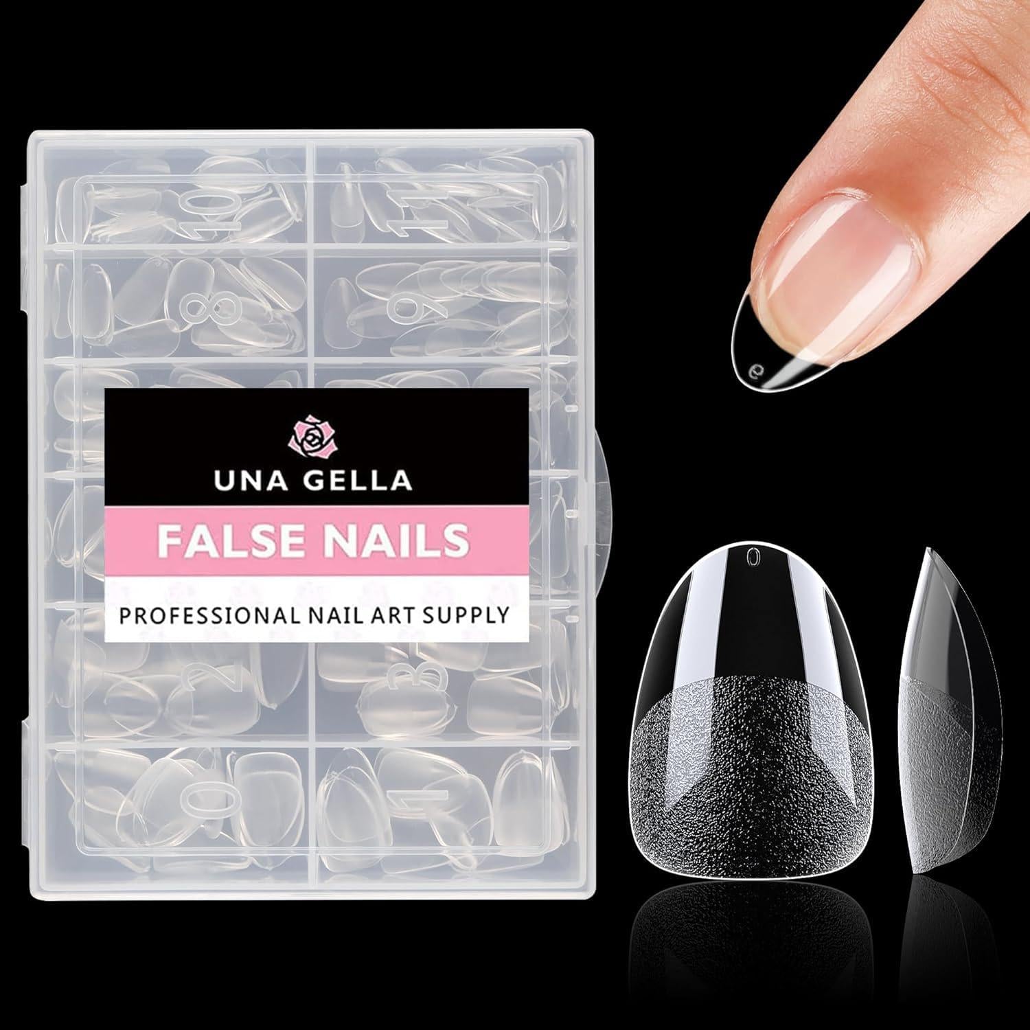 UNA GELLA UNA GELLA Extra Short Almond Nail Tips Full Cover 216PCS Gel Nail Tips Short Almond Shaped Nails Tips Soft Gelly Gel Clear Fake Nails Tip For Acrylic Nail Tip Soak Off Home DIY Salon Nails 12 Sizes