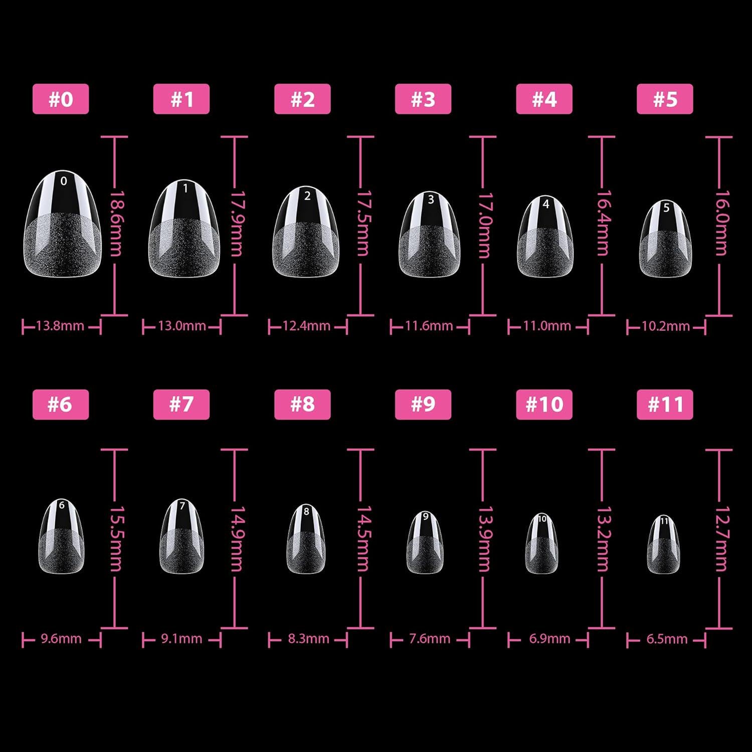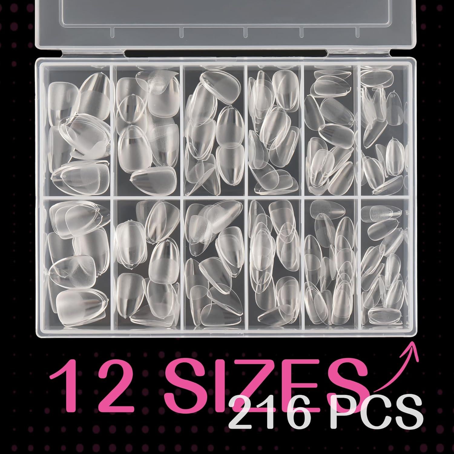 - 216 Pcs,12 Sizes, Pre-numbered - Extra short almond nail tip 216 pieces. 12 sizes, you can find the best size nail tips. The gel nail tips are marked with numbers at the top .which is very convenient for you to choose the suitable size you need. And the fake nail tips with box will provide you with convenient and tidy storage.