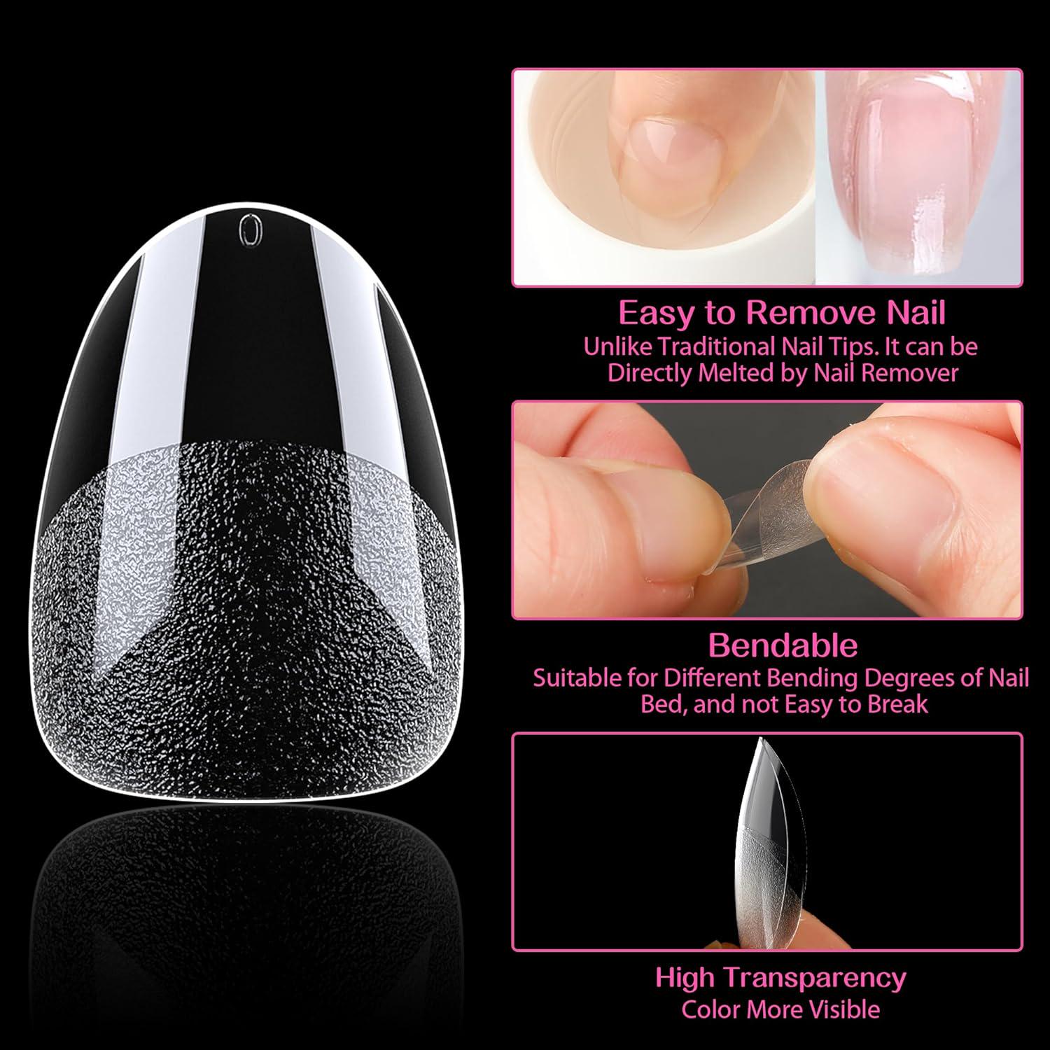 - Inner Deep Matte Texture - Our short almond shaped clear nail tips choose inner frosted texture, better fitting your natural nails. The nail tip is pre-shaped, saving your time and effort. No worry that your nails will become thinner and uglier due to polishing, providing better care for your nails.